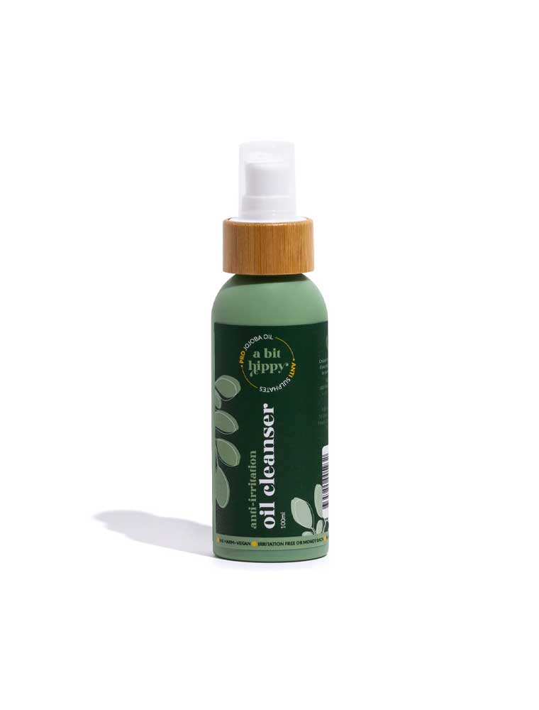 The A Bit Hippy Oil Cleanser is a facial cleansing oil designed for deep cleansing. It uses Grapeseed, Castor, Jojoba, and Rice Bran oils to effectively draw out excess sebum, dirt, makeup, and even sunscreen from pores, while leaving essential skin oils intact. This oil-based cleanser is suitable for all skin types, including sensitive and irritated skin, and can be used for double cleansing to help maintain clear, healthy-looking skin. It's enriched with skin-soothing ingredients like Vitamin E to nourish, Avocado Oil to calm redness, and Coriander Oil to help clear skin. Made in Australia and vegan.