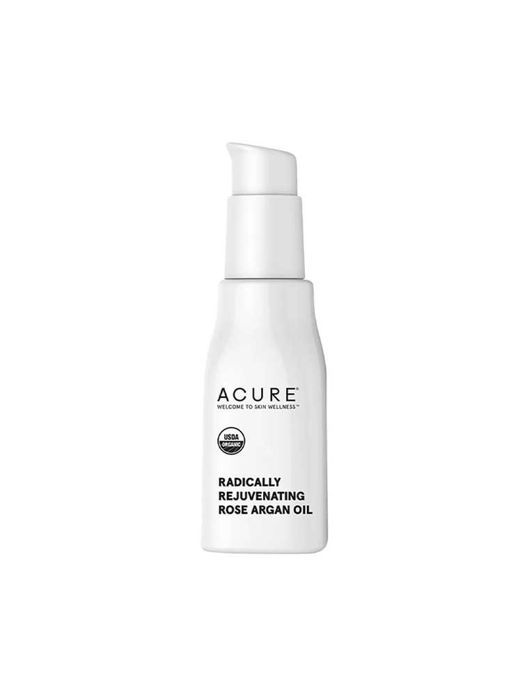 The Acure Radically Rejuvenating Rose Argan Oil is a true skin superfood and versatile, multi-tasking formula to nourish and rejuvenate the skin and hair. This luxurious oil blend contains pure, cold-pressed Argan Oil, Rose Oil, and Rose Geranium, incredibly rich in Vitamin E, essential fatty acids, and proteins to help restore the appearance of texture and tone. Lightweight and easily absorbed, this multipurpose oil can be used as a face and hair serum, body and décolleté massage oil, hand cuticle treatment, and to soothe dry areas like elbows and heels while the blend of rose geranium soothes the senses and calms the mind. Made in the USA and vegan.