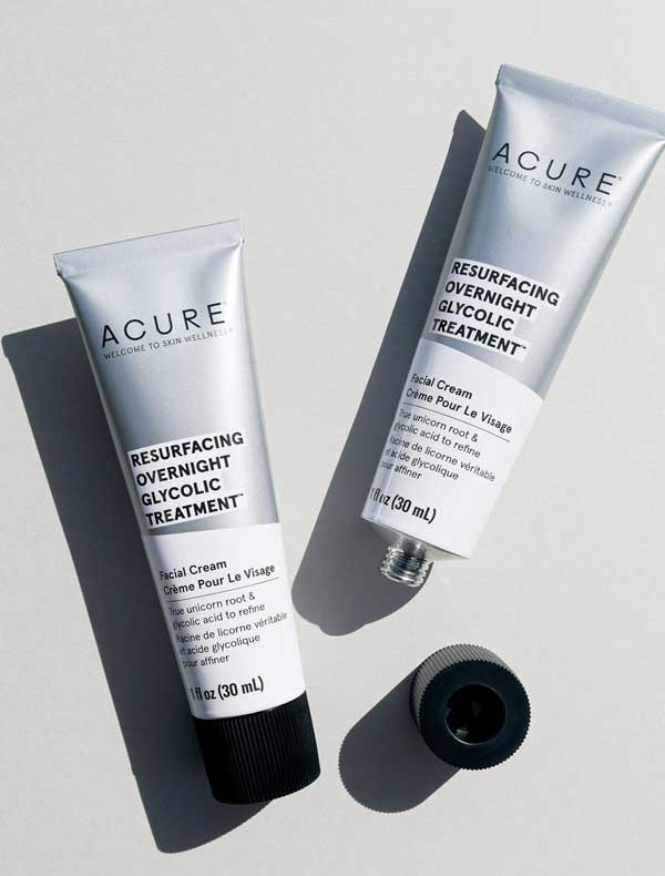 - Glycolic Acid and Lactic Acids provide gentle exfoliation overnight