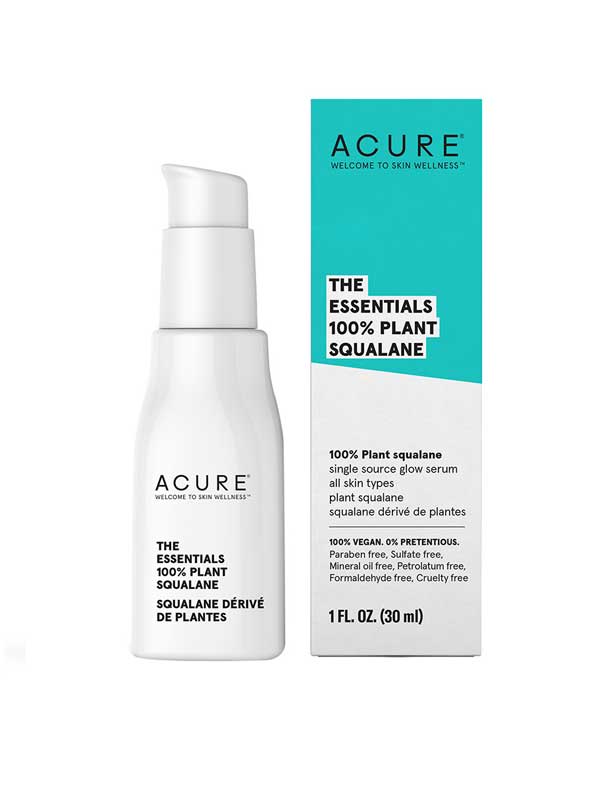 The Acure The Essentials 100% Plant Squalane is a single source glow serum that delivers ultra-light hydration for all skin types. This pure, plant-derived oil closely mimics the skin's natural sebum and is easily absorbed, making it light enough for layering under other products and perfect for daytime wear. The versatile, lightweight moisturiser provides deep hydration while supporting the skin's natural moisture barrier without clogging pores, helping to maintain skin suppleness and a natural glow. Made in the USA and vegan.