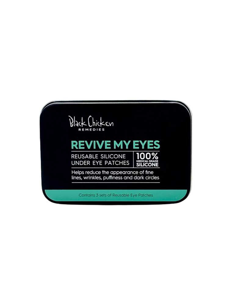 The Black Chicken Remedies Revive My Eyes Reusable Silicone Under Eye Patches are innovative skincare tools designed to help maximise the absorption of your favourite eye serum or cream. Crafted from 100% medical-grade silicone, these patches gently hug the delicate skin around your eyes, creating a barrier that helps active ingredients penetrate more effectively. The skin around the eyes is 7-10 times thinner than the rest of the face, making it more susceptible to the appearance of fine lines and requiring specialised care. These lightweight patches help support your skin's natural moisture retention while you relax. Suitable for all skin types, they are hypoallergenic and non-irritating for sensitive skin. Perfect for use day or night.