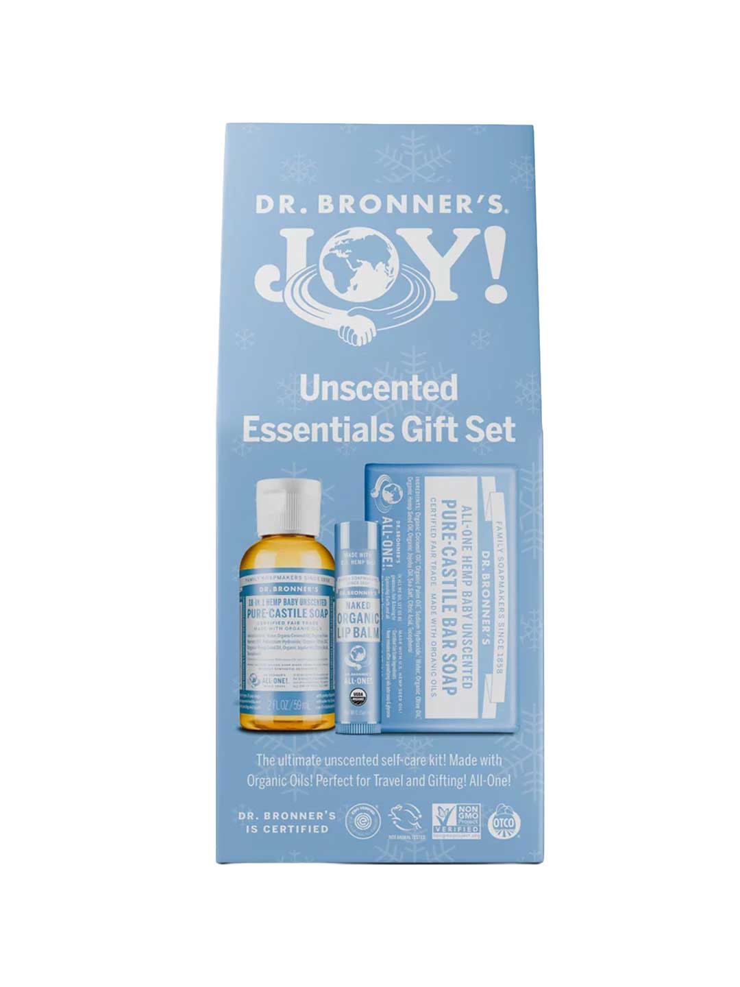 The Baby Unscented Essentials Gift Set is a gentle, fragrance free trio created for delicate and easily irritated skin. This set includes a 59 mL Unscented Pure Castile Liquid Soap, a 140 g Unscented Pure Castile Bar Soap, and a Naked Organic Lip Balm.
