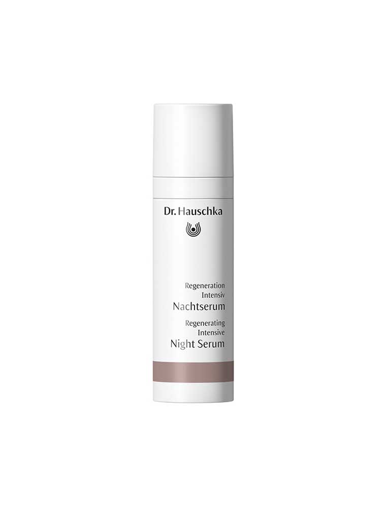 The Dr Hauschka Regenerating Night Serum Intensive is a luxurious night-time formula specifically designed for mature skin that is becoming increasingly dry and sensitive. This unique serum works overnight to help support the skin's natural regenerative processes, noticeably improving skin tone and suppleness. Specifically developed for those aged over 50, it contains a powerful blend of botanicals including Dandelion and Marshmallow to help soothe that tight feeling, plus Lavender to enhance a restful night's sleep. Made in Germany, certified natural and vegan.