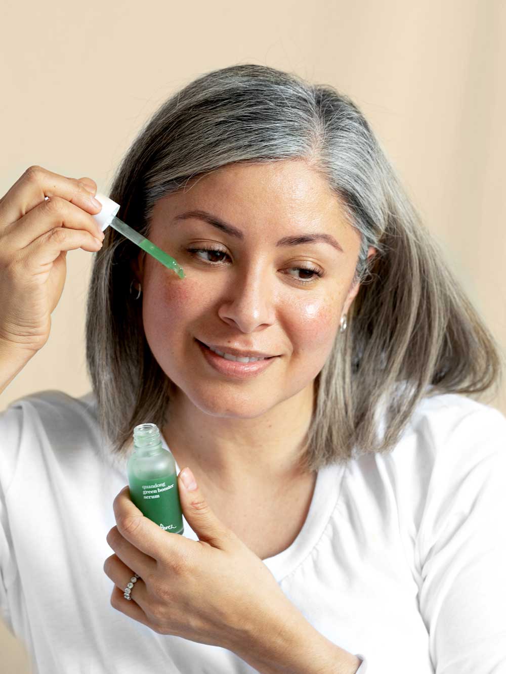 1. Gently rub 1-4 drops of serum into your face, neck and décolletage after cleansing and toning, avoiding the eye area.