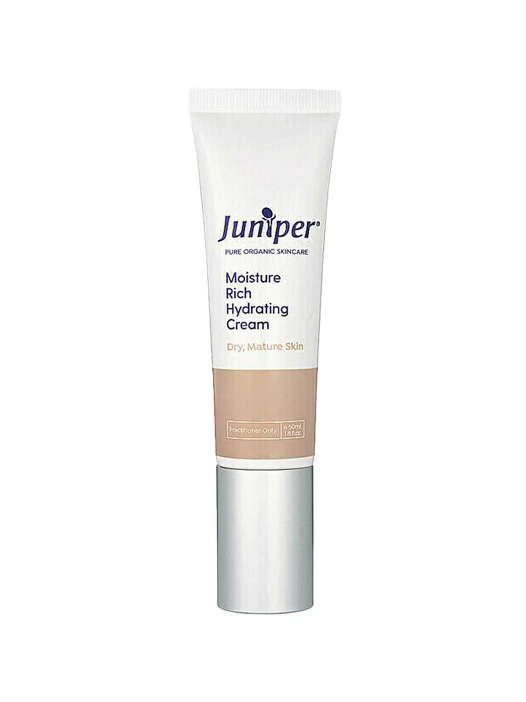 The Juniper Moisture Rich Hydrating Cream is part of the Dry/Mature range, specifically formulated for dry and mature skin types. This deeply nourishing facial moisturiser delivers intensive moisture to dry and mature skin, helping to target the appearance of dehydration and loss of elasticity. Ideal for daily use to maintain an optimal moisture balance for mature skin that needs extra nourishment. This professionally prescribed treatment uses certified organic ingredients at therapeutic levels. Made in Australia and vegan.
