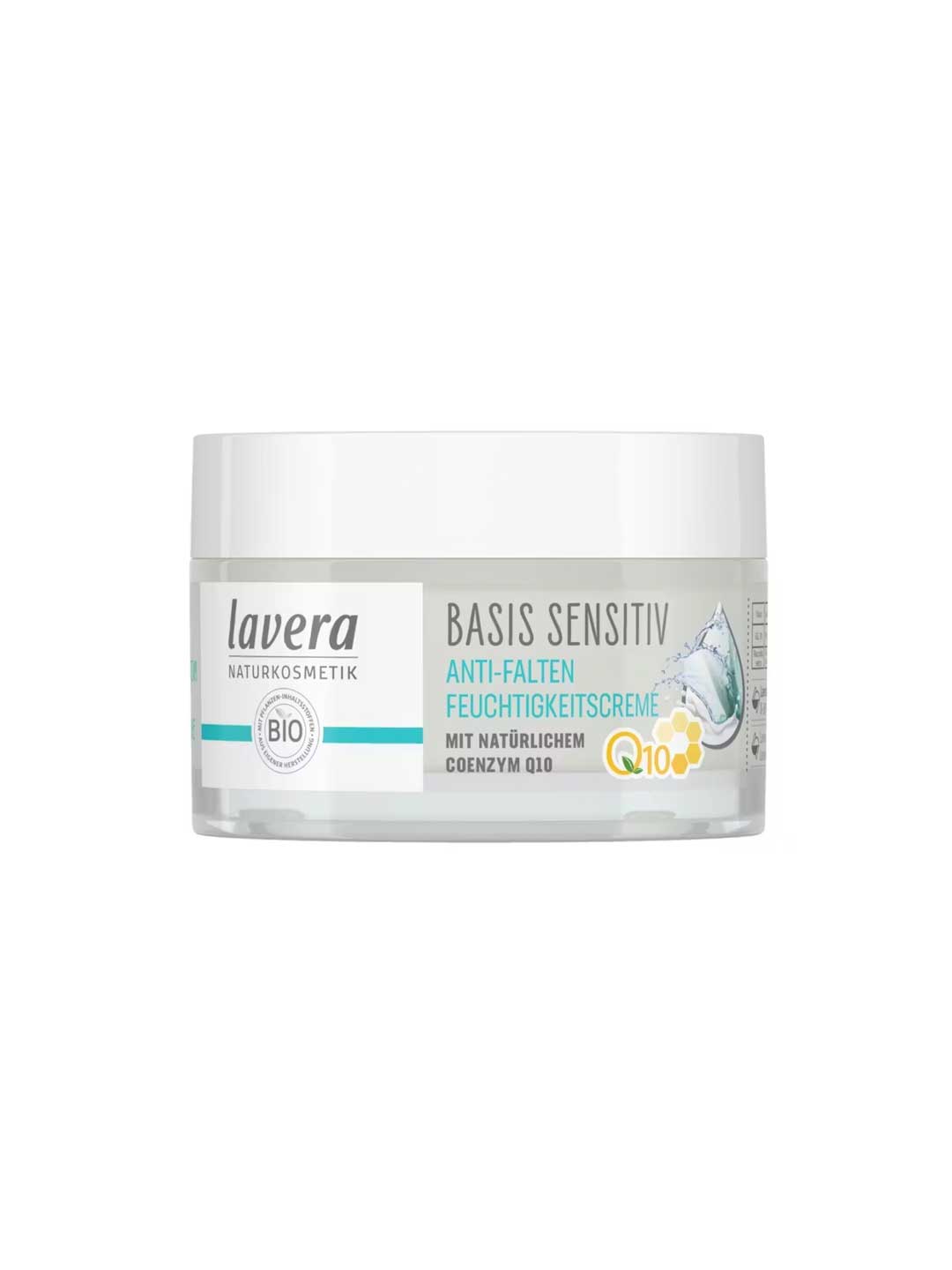 The Lavera Basis Sensitiv Q10 Moisturising Day Cream is a face moisturiser formulated for sensitive skin with natural Coenzyme Q10 to combat premature skin ageing and smooth fine lines and wrinkles. This hydrating moisturiser contains Jojoba Oil, Mango and Shea Butters for all-day hydration, providing balanced moisture and nourishment for sensitive skin. The natural moisturiser is designed to help rejuvenate skin and support a smoother, more youthful appearance. This facial moisturiser is suitable for daily use on sensitive skin types. Made in Germany, certified natural by NATRUE, vegan and packaged in glass.
