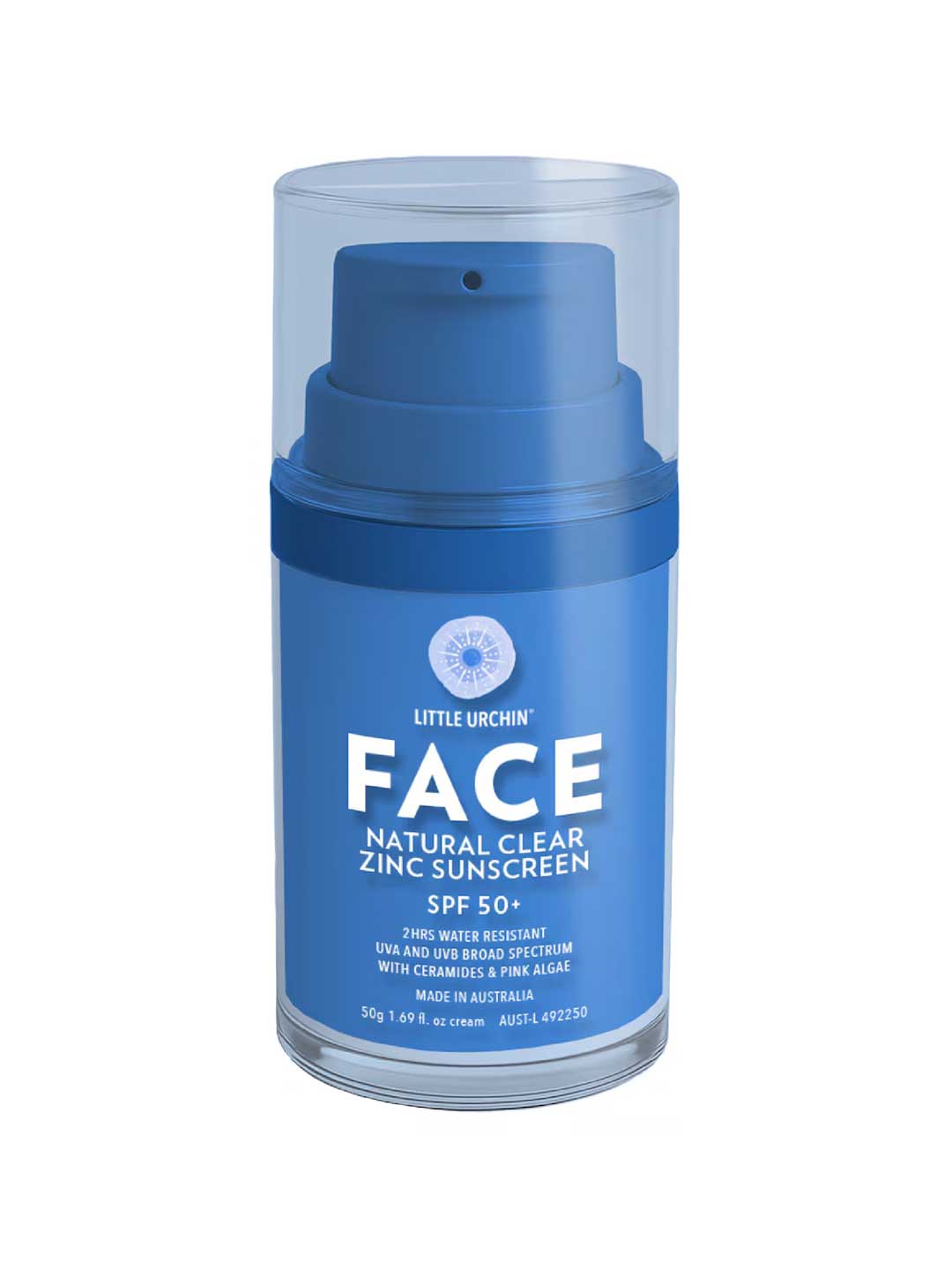 The Little Urchin Natural Face Clear Zinc Sunscreen SPF 50+ is a high performance facial sunscreen that feels like skincare. This lightweight, fragrance free formula blends clear and delivers broad spectrum UVA and UVB protection while supporting skin barrier health. Enriched with natural ceramides to strengthen and hydrate, and pink algae to calm the skin and target early signs of sun damage, it keeps skin looking smooth, clear and healthy. Jojoba and vitamin E add lasting moisture while ensuring a comfortable, non greasy finish that wears beautifully under makeup.