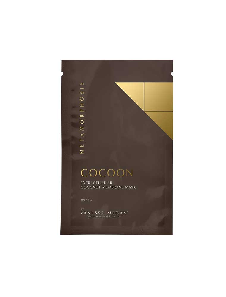 The Vanessa Megan Metamorphosis Cocoon Extracellular Coconut Membrane Mask combines innovative technology with natural hydration. This bio-cellulose mask features coconut membrane fibres that perfectly contour to the face, enhancing ingredient delivery while providing superior moisture. Fortified with 22 amino acids including lysine (a vital building block for protein), hydrating hyaluronic acid, and botanical extracts, this premium mask helps support skin's natural renewal processes. Especially beneficial for mature skin experiencing changes in moisture retention, these masks promote a plumper, more revitalised complexion.