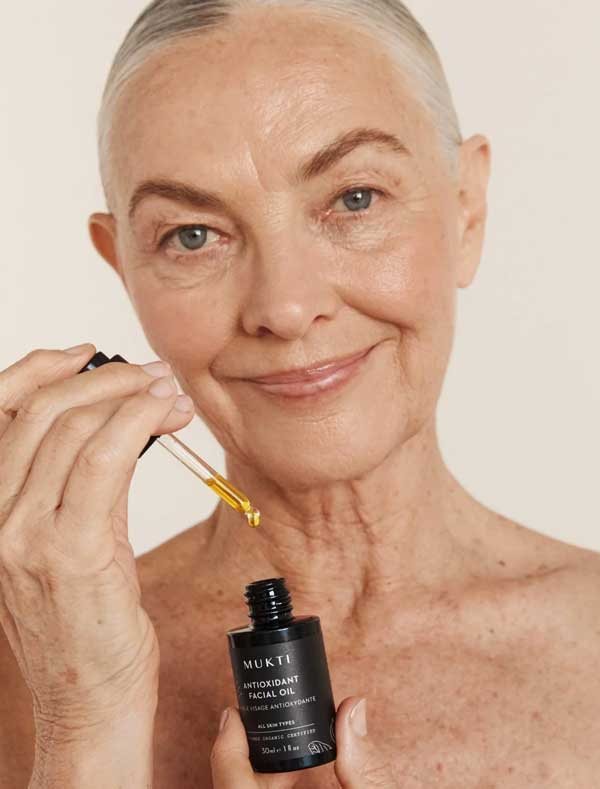 The Mukti Antioxidant Facial Oil is a nourishing skincare formulation designed to help restore youthful radiance and glow. Created with a curated infusion of 15 of the world's most nutrient-dense antioxidant oils, this lightweight oil instantly absorbs into the skin, helping to reinforce the natural lipid barrier. It works to help brighten dull complexions and impart a healthy, dewy glow while providing antioxidant benefits to the skin. Suitable for all skin types. Made in Australia, certified organic, vegan and packaged in glass.