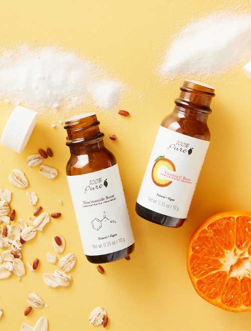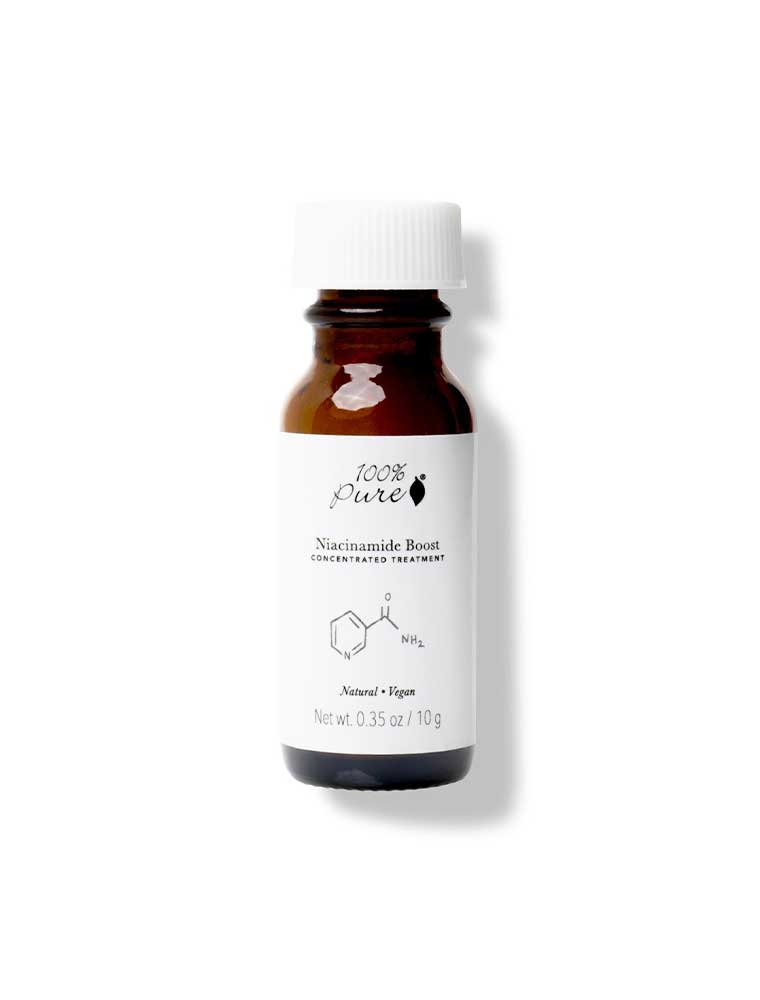 The 100% Pure Niacinamide Boost is perfect for all skin types, especially oily and blemish-prone complexions. This unique water-activated powder treatment features 90% Niacinamide (Vitamin B3) which helps tackle the appearance of large pores, balance excess oil production, and help revitalise the skin. Enhanced with Hyaluronic Acid to hydrate and replenish thirsty skin for a rejuvenated glow. Niacinamide is beneficial for all skin types as it can help combat excess oil and hydrate simultaneously. Use nightly after cleansing and toning for an overnight face treatment. Made in the USA, vegan and packaged in glass.