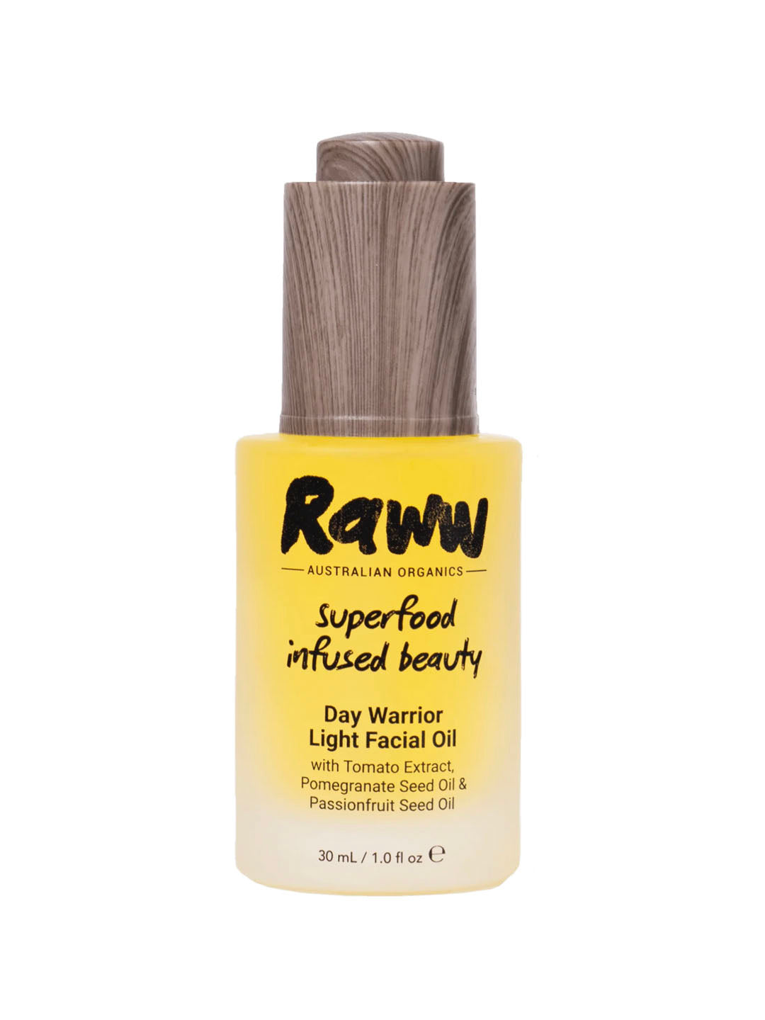 The Raww Cosmetics Day Warrior Light Facial Oil is a lightweight, non-greasy serum designed to fight damaging blue light from smartphones and screens. This versatile oil combines a blend of superfoods, a super absorbent texture, and a non-greasy finish, making it suitable for everyday wear. The clean natural oil contains Lycopene from Tomato Extract, which combines with Rice Bran. Meanwhile, Pomegranate and Passionfruit Seed Oils deliver nourishment. Wear Day Warrior Light Facial Oil under moisturiser, makeup or alone for conditioned skin all day. Always layer with an SPF for full sun protection. Made in Australia, vegan, and packaged in glass.