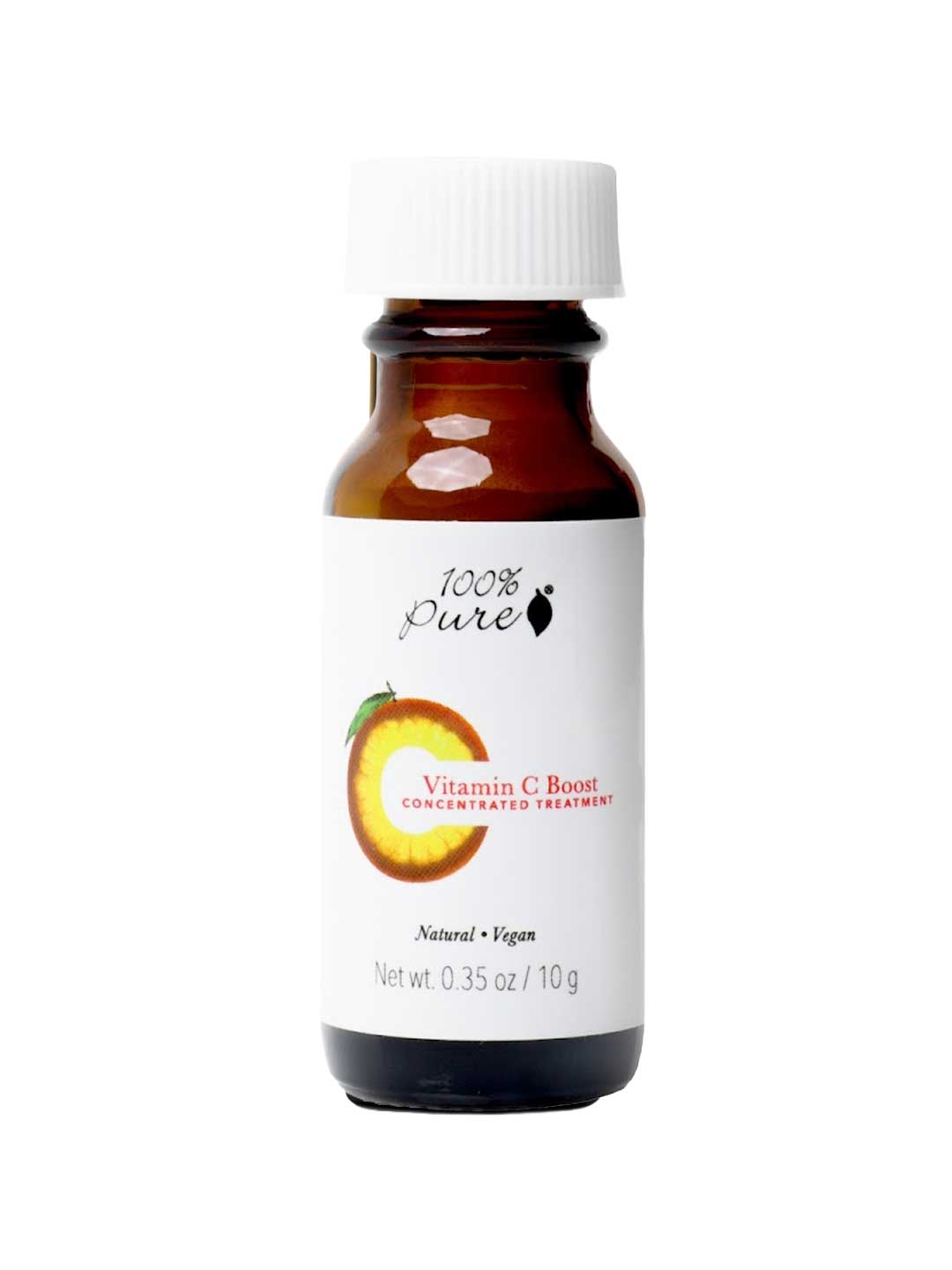 The 100% Pure Vitamin C Boost is a unique water-activated powder treatment and vitamin C serum for sensitive skin, ideal for dull, sun-damaged and uneven complexions with dark spots, hyperpigmentation and lack of luminosity. Formulated with 96% stable Vitamin C designed to help enhance luminosity, brighten the complexion and lessen the appearance of dark spots and uneven skin tone. Enhanced with Hyaluronic Acid to deeply hydrate and replenish thirsty skin for a rejuvenated, plump glow. Once water is added, the innovative powder transforms into an activated hydrating face serum that is pH balanced and gentle enough for daily use. Use nightly after cleansing and toning by mixing a pea-sized amount with a few drops of warm water until reaching a serum-like consistency, then gently pat onto skin. Free from silicone and mineral oil. Made in the USA, vegan and packaged in glass.