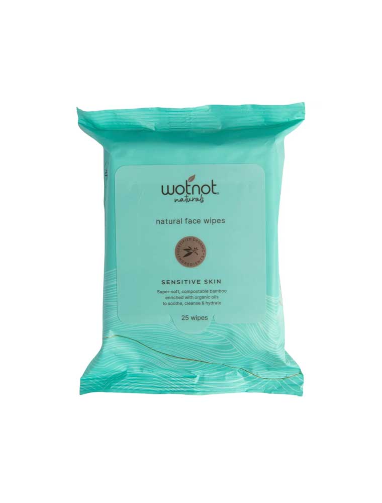 The Wotnot Face Wipes for Sensitive Skin are alcohol-free cleansing wipes designed for even the most delicate or irritable skin. Enriched with certified organic aloe vera to repair, sweet almond oil to restore moisture and calm itch, and rosehip oil for skin regeneration, they leave your skin feeling clean, fresh, and supple. These gentle wipes are suitable for all skin types, including those with rosacea or eczema. Crafted from 100% natural and biodegradable fibres. Vegan.