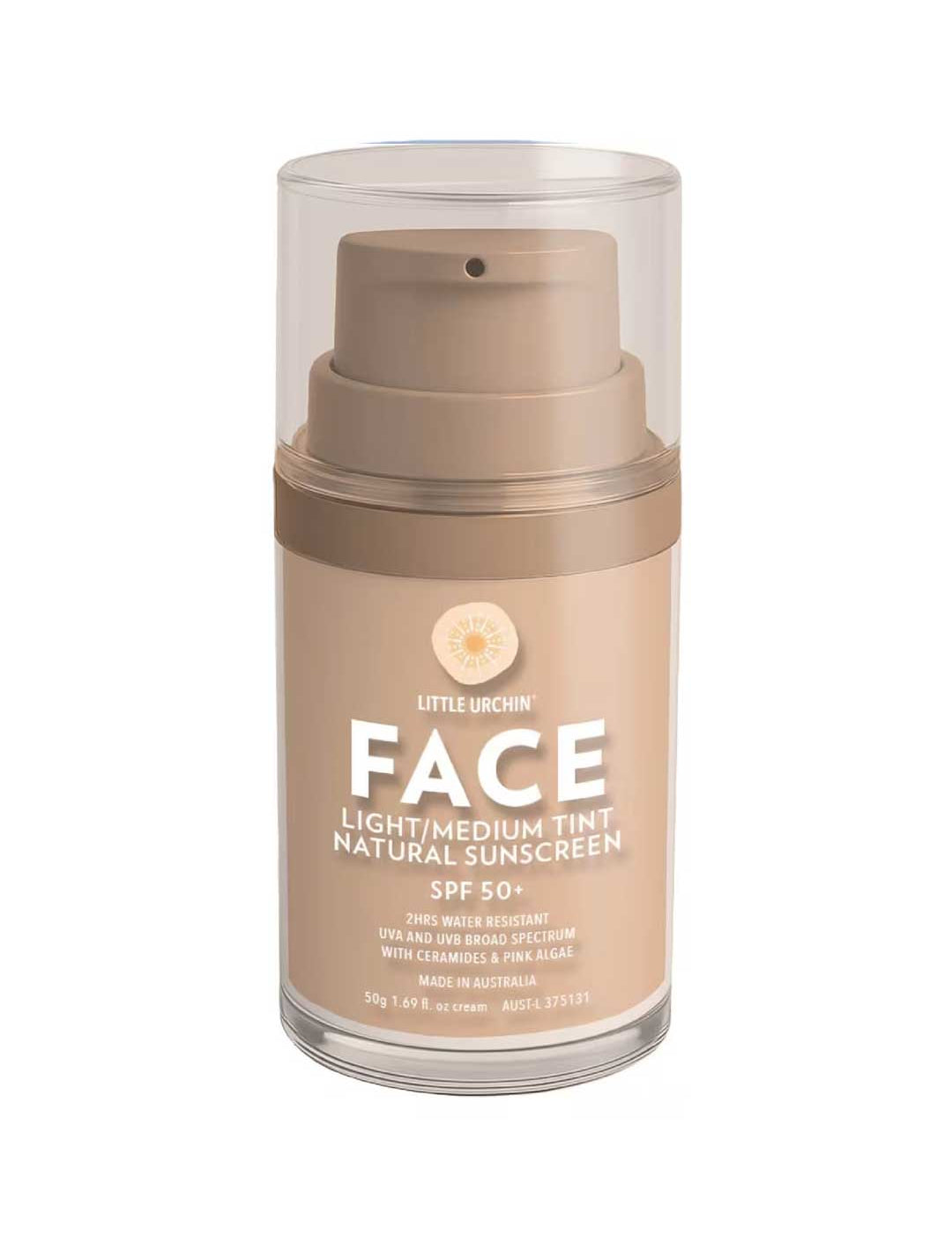 Little Urchin Natural Light-Medium Tinted Face Zinc Sunscreen SPF 50 50g Pump