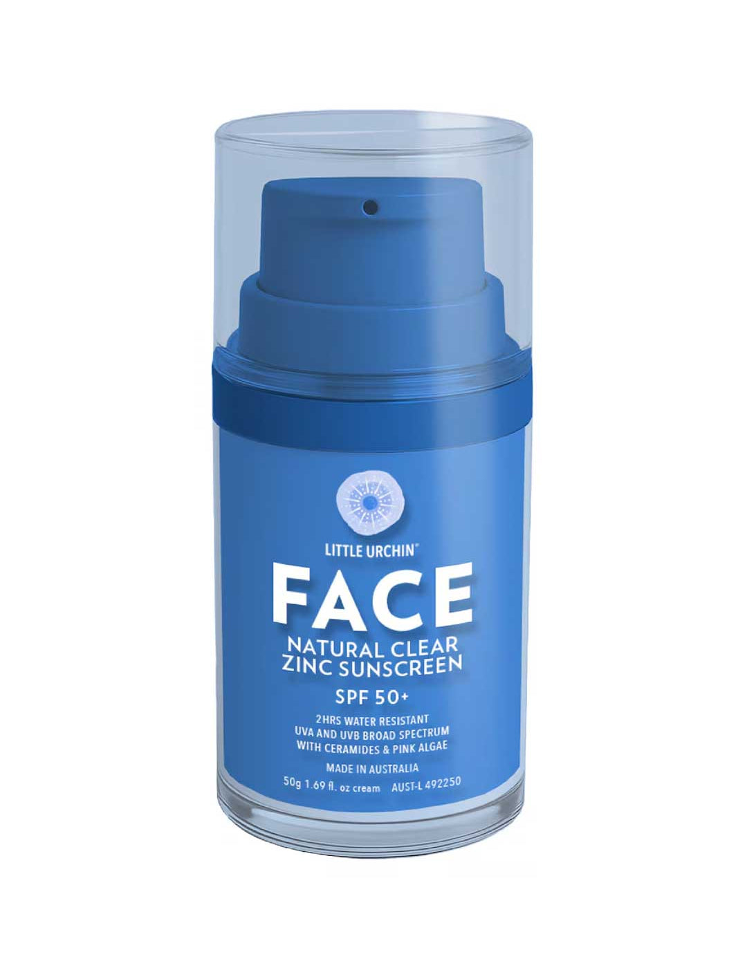 Little Urchin Natural Face Clear Zinc Sunscreen SPF 50 50g Pump