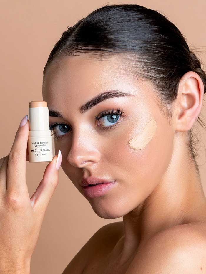 The Avocado Zinc SPF 50 Natural Concealer Medium-Dark delivers full coverage with a matte finish, seamlessly masking blemishes, pigmentation, and under-eye circles while providing high-performance SPF 50 protection. Specifically formulated for extra tanned to dark skin tones. Formulated with non-nano Zinc Oxide, Avocado Oil, Shea Butter, Castor Oil and Vitamin E, this clean beauty essential acts as a powerful physical shield against harmful UVA and UVB rays, all while being gentle enough for sensitive skin and non-comedogenic. Lightweight yet long-wearing, it blends effortlessly to leave your skin looking naturally flawless, never cakey or greasy. Made in Australia and vegan.