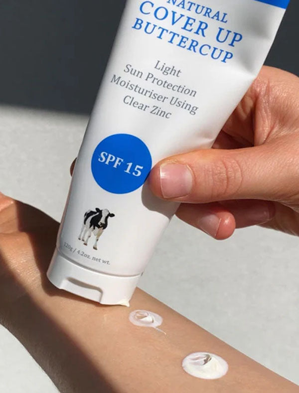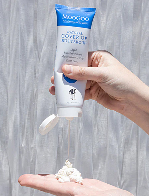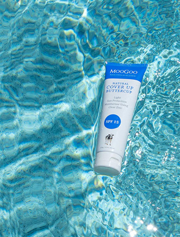 The MooGoo Cover Up Buttercup SPF 15 Natural Moisturiser combines sun protection with daily hydration. This non-greasy formula features clear zinc oxide and Raspberry Seed Extract for broad-spectrum coverage. Natural oils pamper and moisturise the skin. Suitable for all ages and skin types, this lightweight cream provides four hours of protection while being gentle enough for sensitive skin. Naturally preserved with Hops Extract. Made in Australia and vegan.