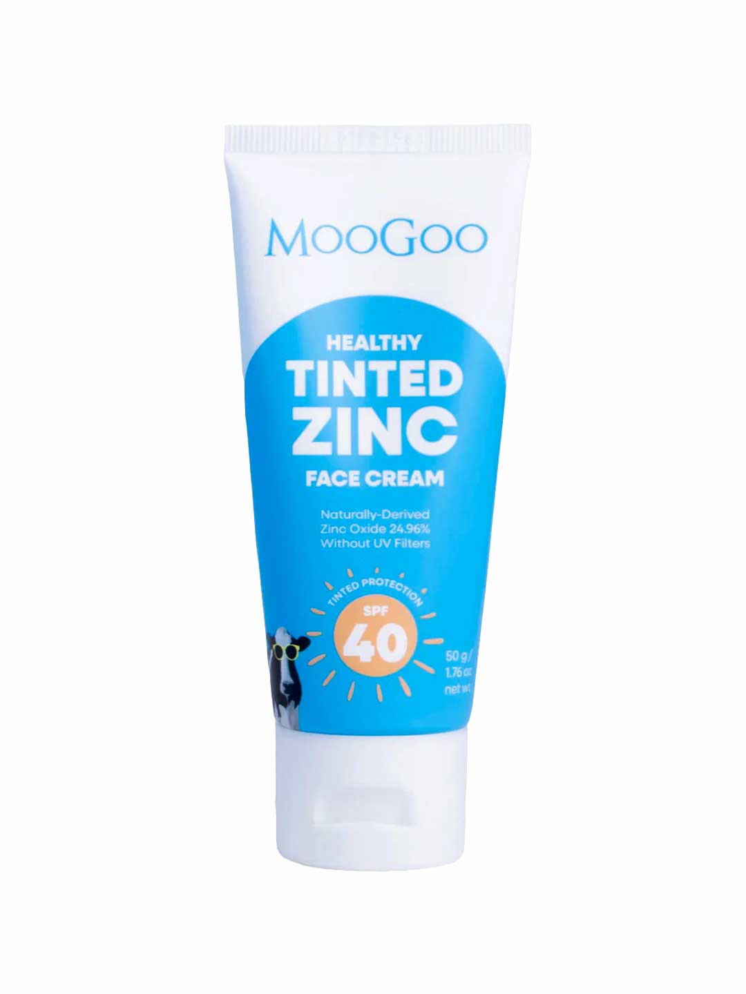 The MooGoo Tinted SPF 40 Face Cream is a tinted sunscreen and tinted moisturiser designed to provide broad-spectrum coverage while evening out skin tone. This natural formula uses Zinc Oxide as a physical barrier to reflect UVA and UVB rays away from the skin, offering SPF 40 protection without chemical UV filters or Titanium Dioxide. The hydrating tinted zinc sunscreen includes natural moisturising oils for hydration and Iron Oxide for a natural, tan-coloured tint, resulting in a smooth, protected complexion. This face moisturiser is free from chemical UV filters, Titanium Dioxide and synthetic preservatives, making it ideal for sensitive skin. Made in Australia.
