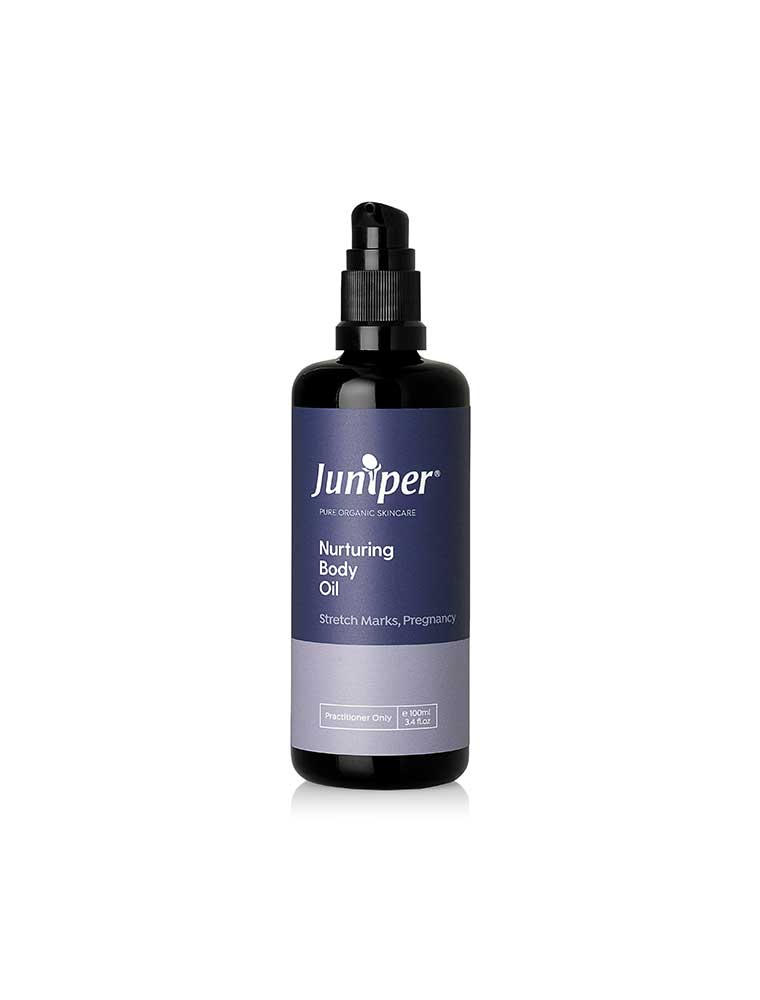 The Juniper Nurturing Body Oil is part of the General range, suitable for all skin types. Indulgent body oil specifically formulated to be used during pregnancy or for those with stretch marks. This light citrus scented oil containing only certified organic ingredients, is high in Oleic and Linoleic Acids, as well as essential vitamins and minerals that can assist in keeping the skin toned and supple and aid in the prevention of stretch marks. This professionally prescribed treatment uses certified organic ingredients at therapeutic levels. Made in Australia and vegan.