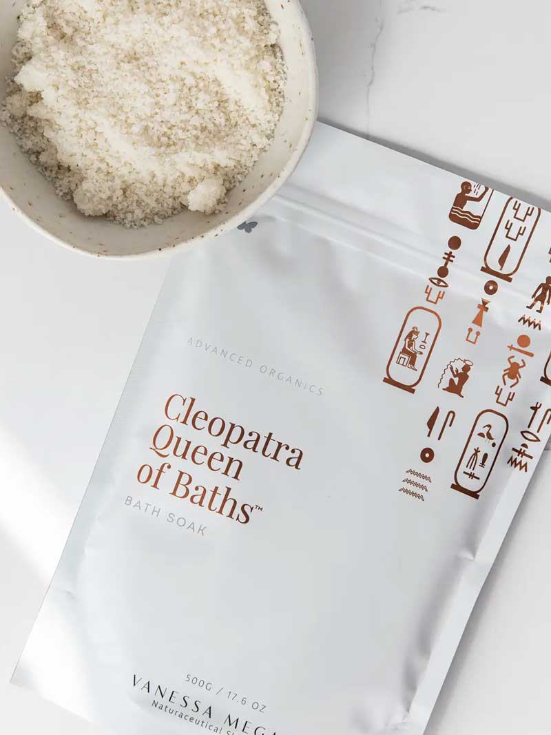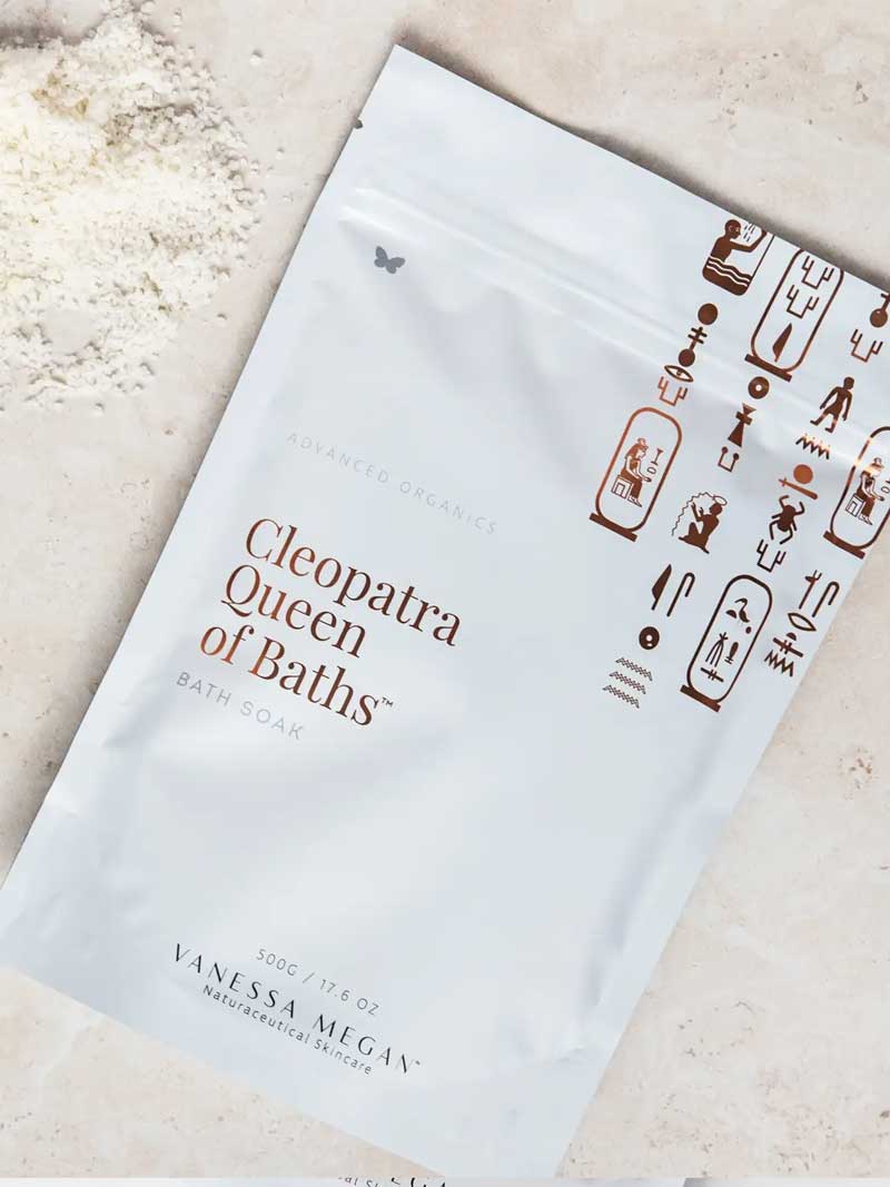 The Vanessa Megan Cleopatra Queen of Baths Scrub & Soak is a luxurious, multi-use treatment inspired by the beauty rituals of ancient royalty. This vegan milk infusion combines gentle exfoliation with deep hydration to nourish the skin, leaving it soft, supple and luminous. Designed to both polish and condition, it helps improve texture and radiance while soothing dryness. Apply a handful to damp skin and massage in circular motions before rinsing, or add to warm bath water for a rejuvenating soak. Use two to three times per week for best results. Made in Australia and vegan.