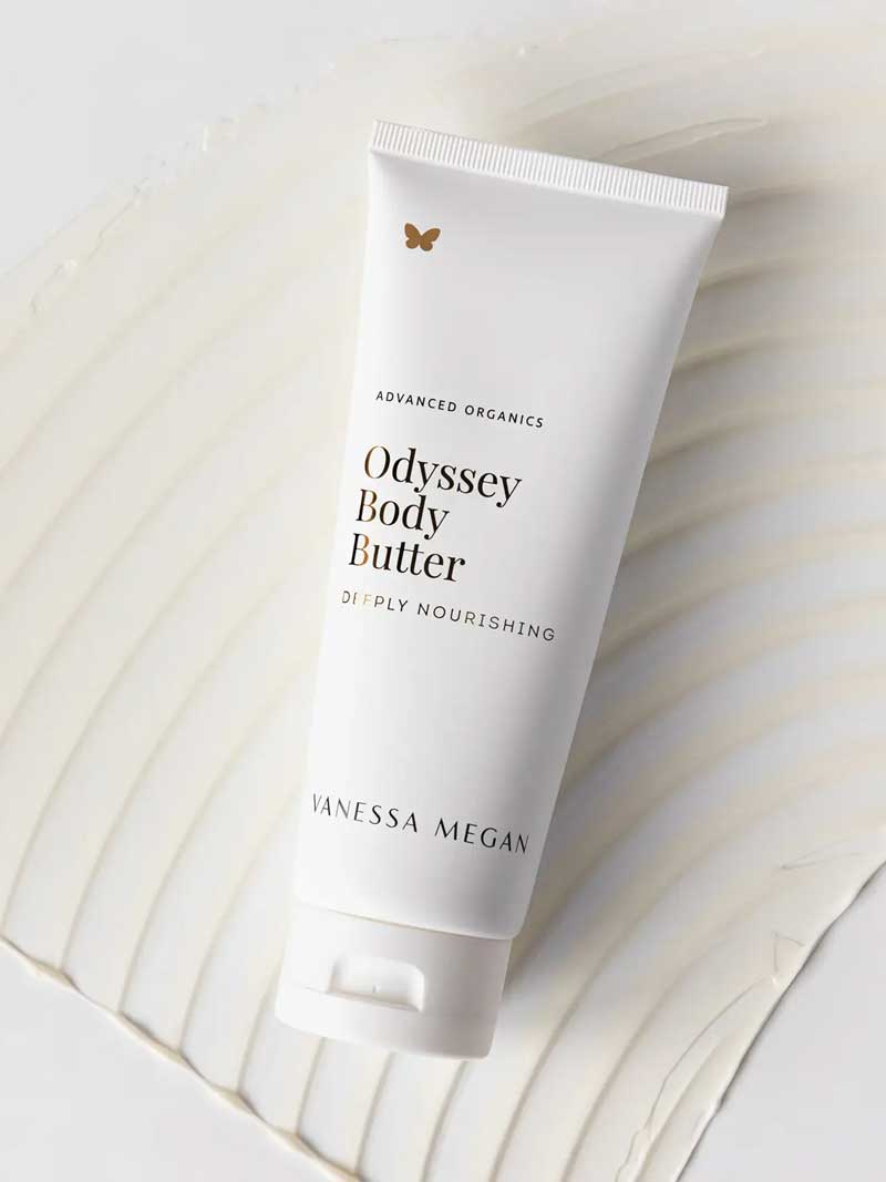 The Vanessa Megan Odyssey Body Butter delivers intense, long-lasting moisture in a luxurious, creamy texture ideal for dry skin types. Formulated with Shea Butter, Coconut Oil and botanical oils of Bergamot, Lavender and Neroli, it deeply nourishes and replenishes while helping to protect the skin’s natural barrier from environmental stressors. The rich Naturaceutical™ formula melts beautifully into the skin, leaving it soft, smooth and delicately scented with a subtle, uplifting aroma. Housed in a sustainable sugarcane tube, made in Australia