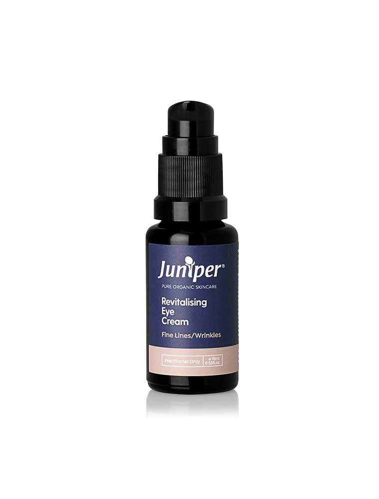 The Juniper Revitalising Eye Cream is part of the Dry/Mature range, specifically formulated for dry and mature skin types. This specialised eye cream is formulated to address the unique needs of the delicate eye area, targeting the appearance of fine lines, wrinkles, puffiness, and dark circles. The lightweight yet nourishing texture is perfect for daily use. This professionally prescribed treatment uses certified organic ingredients at therapeutic levels. Made in Australia and vegan.