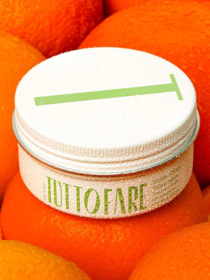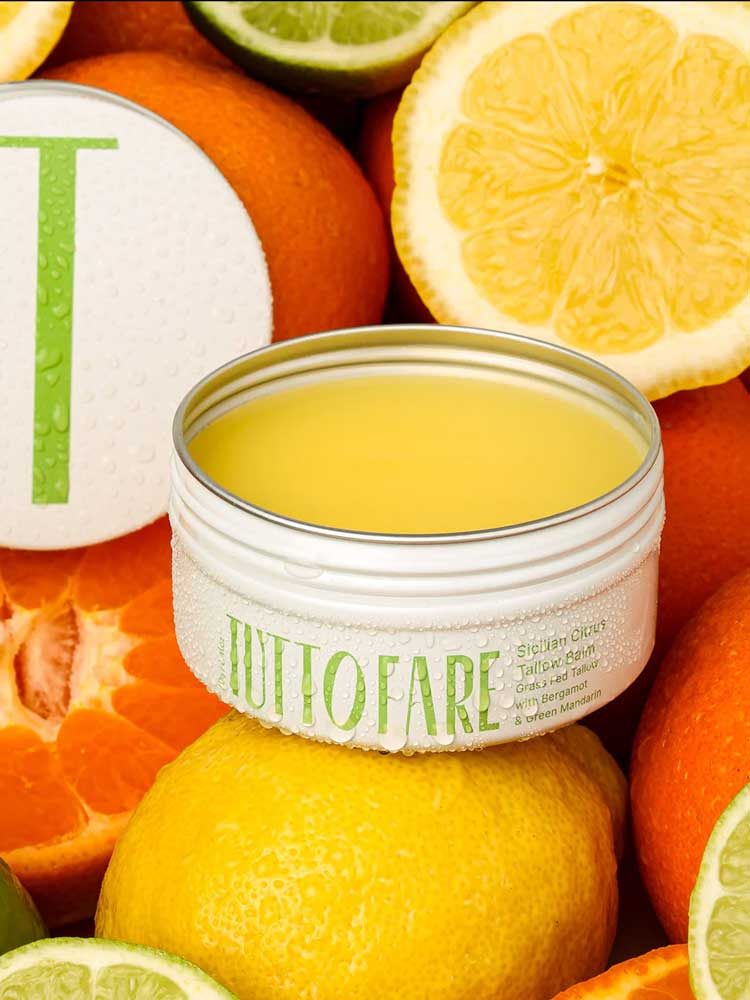 The Tuttofare Sicilian Citrus Tallow Balm is a light, fast-absorbing moisturiser for face and body with a smooth, buttery texture that melts into the skin. Made with 100% Australian Grass-Fed and Finished Beef Tallow, it delivers fatty acid-rich hydration that supports soft, balanced and radiant skin. Jojoba locks in moisture while Bisabolol helps promote a healthy-looking glow. Infused with bergaptene-free Green Tangerine and Orange Bergamot for a bright, uplifting citrus scent, this breathable balm is ideal for normal, oily or blemish-prone skin and performs beautifully in warm or humid conditions. Made in Australia and plastc free.