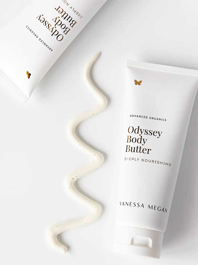 The Vanessa Megan Odyssey Body Butter delivers intense, long-lasting moisture in a luxurious, creamy texture ideal for dry skin types. Formulated with Shea Butter, Coconut Oil and botanical oils of Bergamot, Lavender and Neroli, it deeply nourishes and replenishes while helping to protect the skin’s natural barrier from environmental stressors. The rich Naturaceutical™ formula melts beautifully into the skin, leaving it soft, smooth and delicately scented with a subtle, uplifting aroma. Housed in a sustainable sugarcane tube, made in Australia