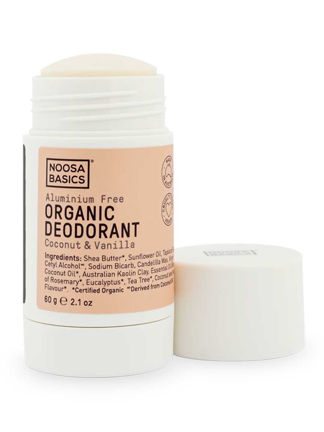 The Noosa Basics Deodorant Stick - Coconut & Vanilla is designed to provide effective natural freshness and moisture absorption. Free from aluminum and aluminum salts like potassium alum, this simple and effective deodorant stick is created by a small-batch apothecary located in Noosa. It uses only plant-derived ingredients including organic Shea Butter, Tapioca Starch, Australian Kaolin Clay, Sodium Bicarbonate and Candelilla Wax to absorb moisture while allowing your body to naturally release toxins. This gentle deodorant stick features tropical blend of pure Coconut for a fresh, beachy scent. Made in Australia and vegan.
