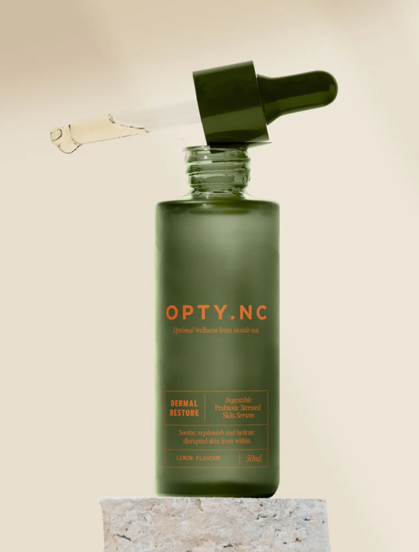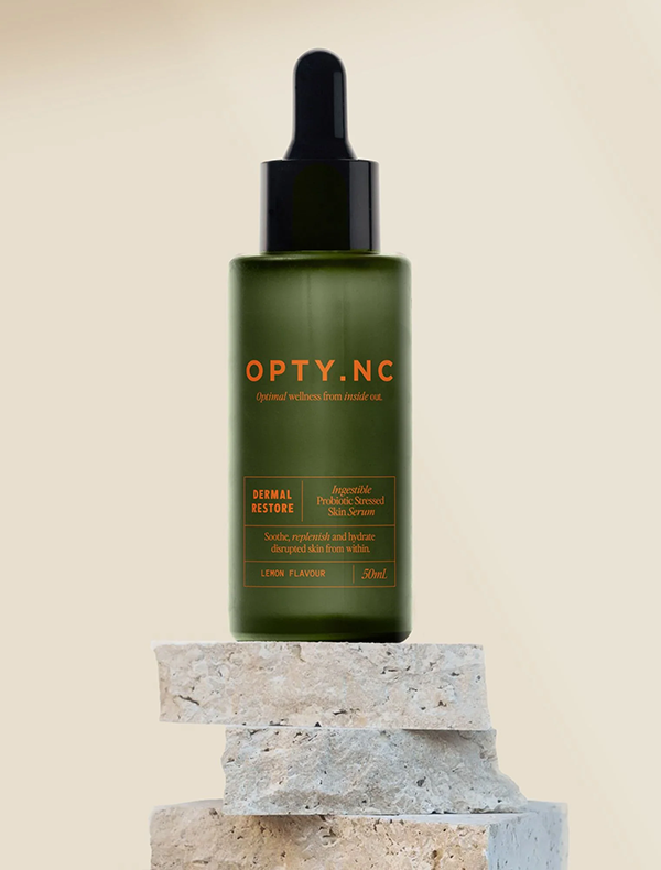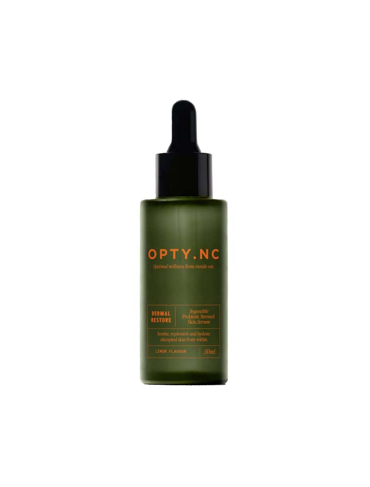 The OPTY.NC Dermal Restore is an ingestible liquid probiotic expertly formulated to support reactive and sensitive skin. Simply add 2 full droppers directly in the mouth or in a glass of water daily. It contains Fermented Papaya, Curcumin and Gotu Kola Blend, Vitamin C, and Zinc to synergistically optimise the digestive, immune, and nervous system function to support the skin from within. Vegan