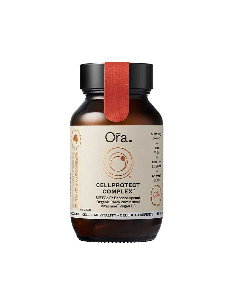 Ora Health CellProtect Complex is a comprehensive supplement designed to support cellular health. It features SIRTCell™, a unique Broccoli sprout concentrate that activates the body's cellular antioxidant system. Combined with organic Black seed extract and activated vitamins and minerals, this formula aims to support whole body health. In a 12-week consumer study, all participants reported a reduction in hyperpigmentation, while 91% noted improvements in energy levels.