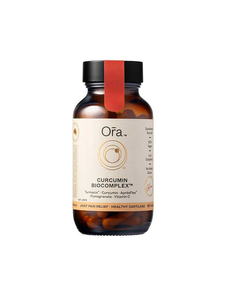 Ora Health Curcumin BioComplex is formulated to provide fast-acting joint pain relief. It contains clinically-trialled Turmacin™ to address symptoms of mild osteoarthritis and AprèsFlex™, which has been shown to reduce mild joint pain within 5 days. The addition of Pomegranate husk and Vitamin C supports collagen formation and connective tissue health. This formula uses water-soluble curcumin for improved bioavailability.