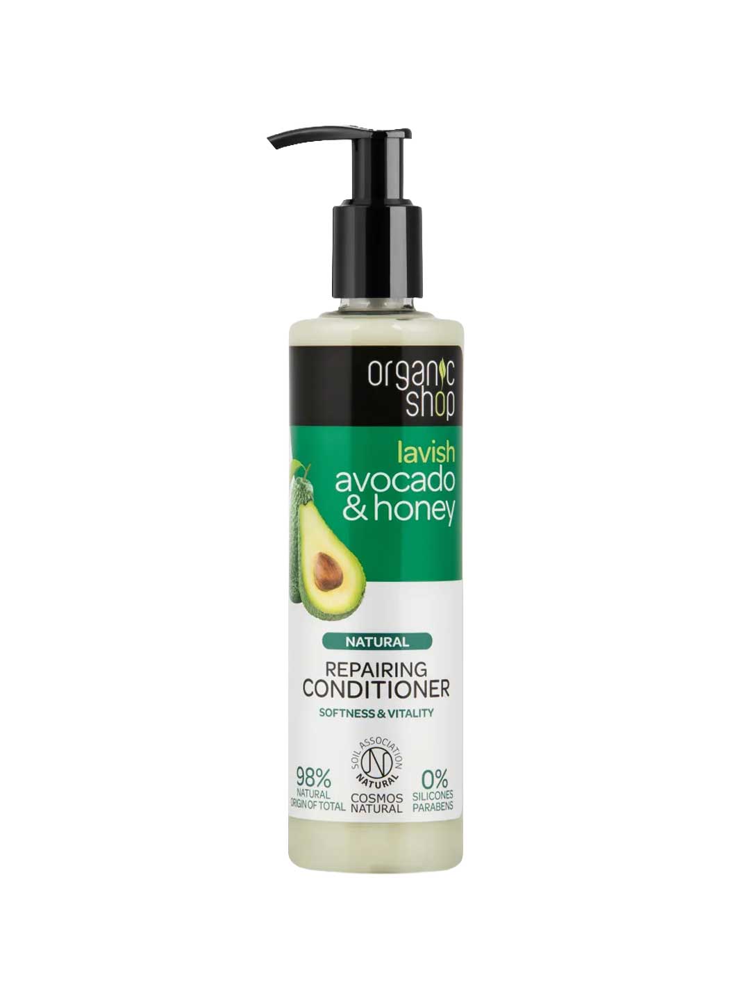 The Organic Shop Avocado & Honey Repairing Conditioner is a rich daily conditioner for damaged, dull or frizz-prone hair that needs softness and shine. Sulphate free and silicone free, this certified natural conditioner uses avocado and honey to moisturise, smooth and improve manageability, leaving hair feeling soft and silky. Made in Europe and certified natural.