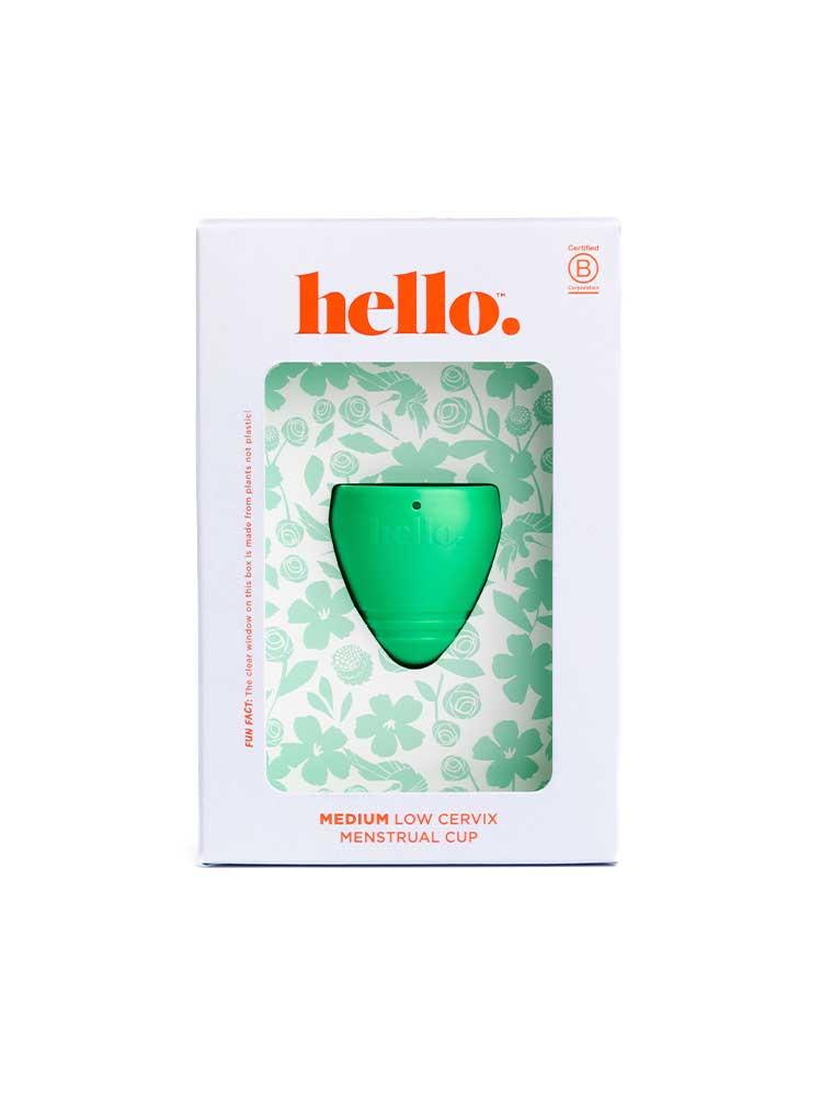 The Hello Low Cervix Cup is a modern menstrual cup designed by a Registered Nurse specifically for those with a low cervix. It is made from hypoallergenic, medical-grade TPE (thermoplastic elastomer - the same material used to make catheters and intravenous lines for medical purposes). Unlike the regular Hello Cup, the Hello Low Cervix Cup does not have a toggle at the base. This is because people with a low cervix have a shorter vaginal canal, so they may find the toggle exposed, or uncomfortable. Instead, Hello Low Cervix Cups have a comfortable, rounded base with grip rings which is thickened to allow for easy removal. Once inside the body TPE warms and moulds to the user's body, creating a custom fit. This works slightly differently to traditional silicone cups which form a seal by having even pressure along the rim. TPE will still have some pressure on the rim but also adapts to fit the user's body. It holds approximately 3x the capacity of single-use tampons and pads. This cup holds 21ml with a 41mm diameter and 43mm length. Made in New Zealand and vegan