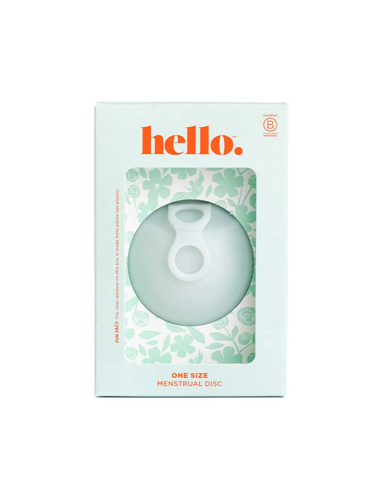 The Hello Disc Sea Fog is a menstrual disc co-designed by world-renowned menstrual cup and disc expert Kim Rosas and a Registered Nurse that features a double-looped tab for easy removal. Made from 100% premium medical-grade silicone, the Hello Disc provides hours of leak-proof protection and holds 50ml, equivalent to approximately 5 tampons. This handy 'one size fits most' disc with a 68mm diameter and 48mm looped tab sits higher than a menstrual cup and tucks behind the pubic bone. This disc suits all cervix heights and can be worn with an IUD. Unlike menstrual cups that use suction, the Hello Disc is held in place by being tucked behind the pubic bone and can be worn during intercourse. Made in New Zealand and vegan. Note: The Hello Disc is NOT intended to be used as contraception and will not prevent pregnancy. If you wear your Hello Disc during sexual intercourse and condoms are your sole method of birth control, remove your Hello Disc - the disc has not been tested against condom use and friction may create a micro-tear in the condom.