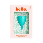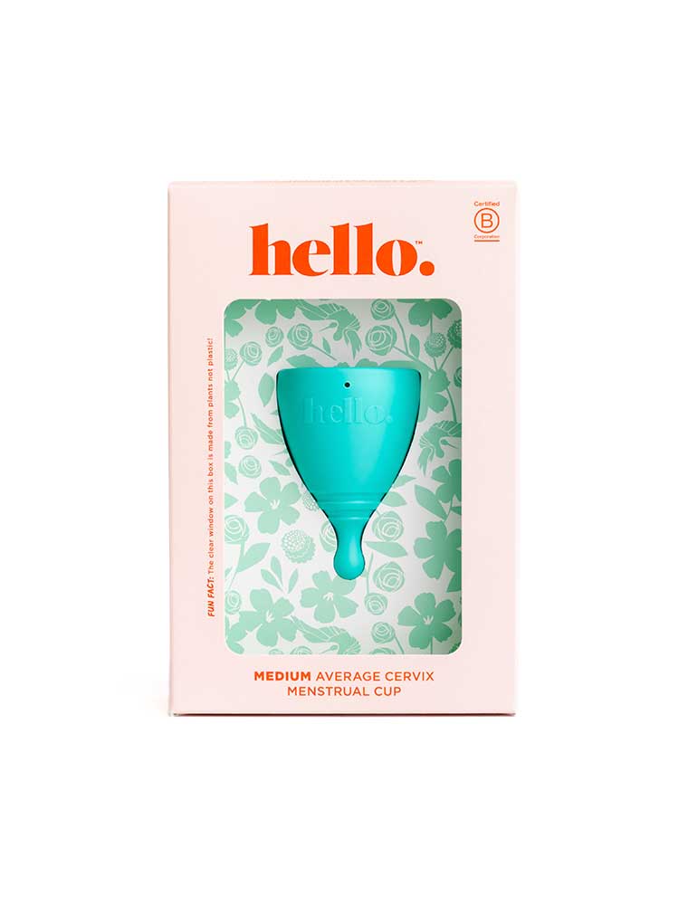 The Hello Cup is a modern menstrual cup designed by a Registered Nurse. It is made from hypoallergenic, medical-grade TPE (thermoplastic elastomer - the same material used to make catheters and intravenous lines for medical purposes). Once inside the body TPE warms and moulds to the user's body, creating a custom fit. This works slightly differently to traditional silicone cups which form a seal by having even pressure along the rim. TPE will still have some pressure on the rim but also adapts to fit the user's body. It holds approximately 3x the capacity of single-use tampons and pads. This Medium size holds 21ml with a 41mm diameter and 59mm length, and comes in an aqua blue colour. Suitable for those with an average cervix height. Made in New Zealand and vegan