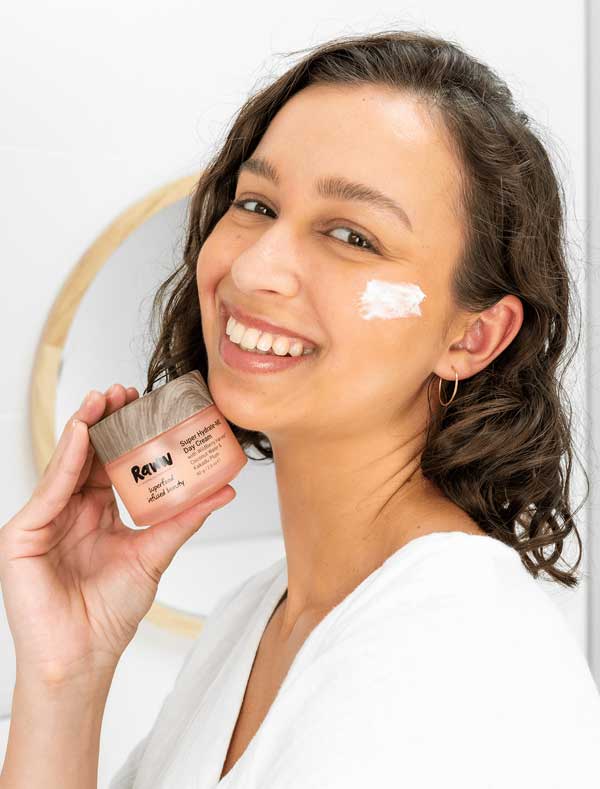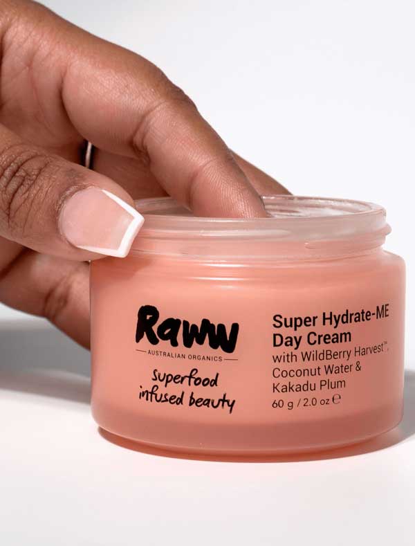 The Raww Hydrating Day Cream is a whipped facial moisturiser designed to firm, plump, and hydrate skin throughout the day. Ideal for blemish-prone, combination, and oily complexions. The cream is supercharged with natural extracts including Coconut Water, Vitamin C-rich Kakadu Plum and Wildberry Harvest™, a nourishing complex of super-berries, clinically proven to lock-in moisture. Made in Australia, certified natural, vegan and packaged in glass.