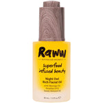 The Raww Night Owl Rich Facial Oil is a luxurious natural overnight oil designed to replenish and renew your complexion as you sleep. This super potent, richly nourishing blend helps support the appearance of fine lines and uneven skin tone whilst promoting a healthy-looking complexion. This face oil is packed with superfoods, including nourishing Moringa Oil, hydrating Olive Squalane and regenerating Rosehip Oil to help soothe and comfort skin overnight. It is deeply hydrating to support dry and tired-looking skin, providing long-lasting moisture all night so you can wake up to plump and hydrated skin. Made in Australia, vegan, and packaged in glass.