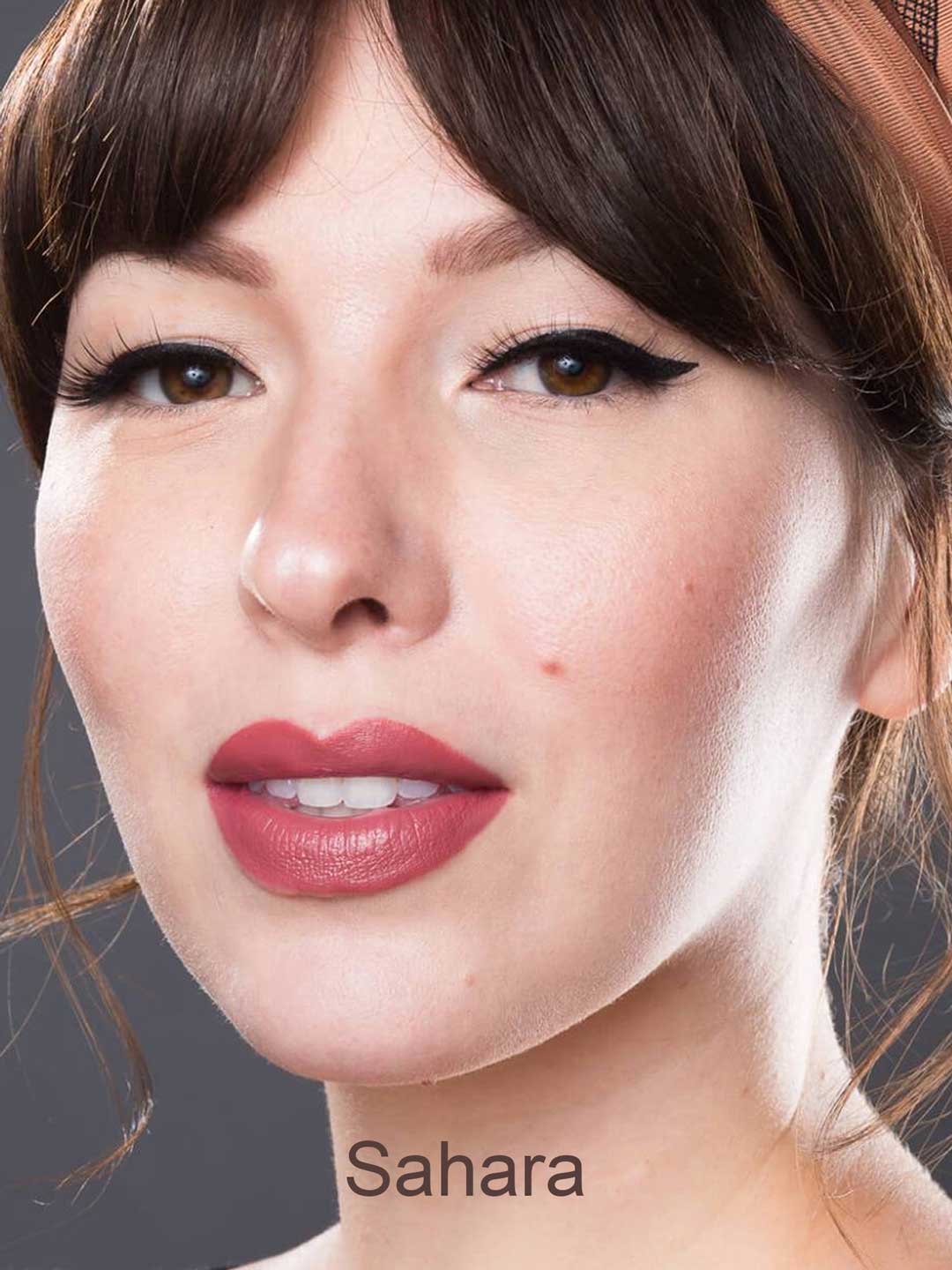 Cocoa Butter Matte Lipstick: Sahara - Caprylic/Capric Triglyceride (MCT Coconut Oil), Euphorbia Cerifera (Candelilla) Wax, Ricinus Communis (Castor) Seed Oil, Heptyl Undecylenate (From Castor Seed Oil), Silica (From Bamboo), Hydrogenated Vegetable Oil (From Sunflower and Olive Oil), Oleic/Linoleic/Linolenic Polyglycerides (From Sunflower Oil), Crambe Abyssinica Seed Oil (From Crambe Plant), Phytosterol Esters (From Sunflower Oil), Theobroma Cacao (Cocoa) Seed Butter, Fragaria Ananassa (Strawberry) Fruit Extract, Punica Granatum (Pomegranate) Fruit Extract, Vaccinium Myrtillus (Bilberry) Fruit Extract, Rubus Idaeus (Raspberry) Fruit Extract, Vitis Vinifera (Grape Skin) Extract, Vaccinium Angustifolium (Blueberry) Fruit Extract, Rubus Fruticosus (Blackberry) Fruit Extract, Beta Vulgaris (Beet) Root Extract, Rubus Leucodermis (Black Raspberry) Extract, Euterpe Oleracea (Acai) Fruit Extract, Bixa Orellana (Annatto) Seed Extract, Daucus Carota Sativa (Carrot) Root Extract, Prunus Cerasus (Cherry) Extract, Curcuma Longa (Turmeric) Root Extract, Active Carbon (Activated Bamboo Charcoal), Prunus Armeniaca (Apricot) Kernel Oil, Lecithin (From Sunflower), Butyrospermum Parkii (Shea) Butter, Helianthus Annuus (Sunflower) Seed Oil, Tocopherol (Vitamin E), Ascorbyl Palmitate (Vitamin C), Rosmarinus Officinalis (Rosemary) Leaf Extract, Citric Acid (From Citrus). May Contain: CI 77891, CI 77492, CI 77491, CI 45410, CI 75810.