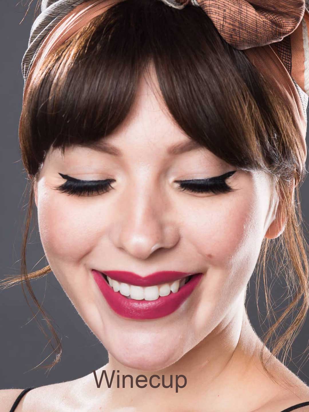 Cocoa Butter Matte Lipstick: Winecup - Caprylic/Capric Triglyceride (MCT Coconut Oil), Euphorbia Cerifera (Candelilla) Wax, Ricinus Communis (Castor) Seed Oil, Heptyl Undecylenate (From Castor Seed Oil), Silica (From Bamboo), Hydrogenated Vegetable Oil (From Sunflower and Olive Oil), Oleic/Linoleic/Linolenic Polyglycerides (From Sunflower Oil), Crambe Abyssinica Seed Oil (From Crambe Plant), Phytosterol Esters (From Sunflower Oil), Theobroma Cacao (Cocoa) Seed Butter, Fragaria Ananassa (Strawberry) Fruit Extract, Punica Granatum (Pomegranate) Fruit Extract, Vaccinium Myrtillus Fruit (Bilberry) Extract, Rubus Idaeus (Raspberry) Fruit Extract, Vitis Vinifera (Grape Skin) Extract, Vaccinium Angustifolium (Blueberry) Fruit Extract, Rubus Fruticosus (Blackberry) Fruit Extract, Beta Vulgaris (Beet) Root Extract, Rubus Leucodermis (Black Raspberry) Extract, Euterpe Oleracea (Acai) Fruit Extract, Bixa Orellana (Annatto) Seed Extract, Daucus Carota Sativa (Carrot) Root Extract, Prunus Cerasus (Cherry) Extract, Curcuma Longa (Turmeric) Root Extract, Active Carbon (Activated Bamboo Charcoal), Prunus Armeniaca (Apricot) Kernel Oil, Lecithin (From Sunflower), Butyrospermum Parkii (Shea) Butter, Helianthus Annuus (Sunflower) Seed Oil, Tocopherol (Vitamin E), Ascorbyl Palmitate (Vitamin C), Rosmarinus Officinalis (Rosemary) Leaf Extract, Citric Acid (From Citrus). May Contain: Titanium Dioxide, Iron Oxides