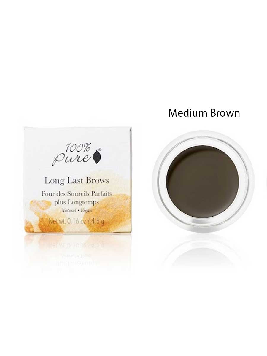 The 100% Pure Long Last Brows is a natural brow gel designed to shape, fill and perfect your brows with a firm waxy texture that is easily blendable for a natural or more voluminous look. This multi-tasking formula features conditioning Biotin and Pro-vitamin B5 that help moisturise and condition brow hairs whilst Vitamin E provides antioxidant benefits. Enhanced with Coffee and Cocoa that help enrich brows with antioxidants whilst delivering natural-looking colour and texture. Available in four versatile shades: Blonde (light golden blonde), Soft Brown (warm light brown), Taupe (cool neutral brown), and Medium Brown (rich medium brown). The long-lasting formula allows you to create defined arches with buildable coverage that stays put throughout the day for perfectly groomed brows. Made in the USA and vegan.
