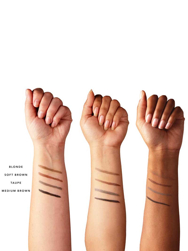 Use an eyebrow brush to apply colour to the brow. Shape and fill with precision angled brush tip, then comb hair into place with spoolie brush.