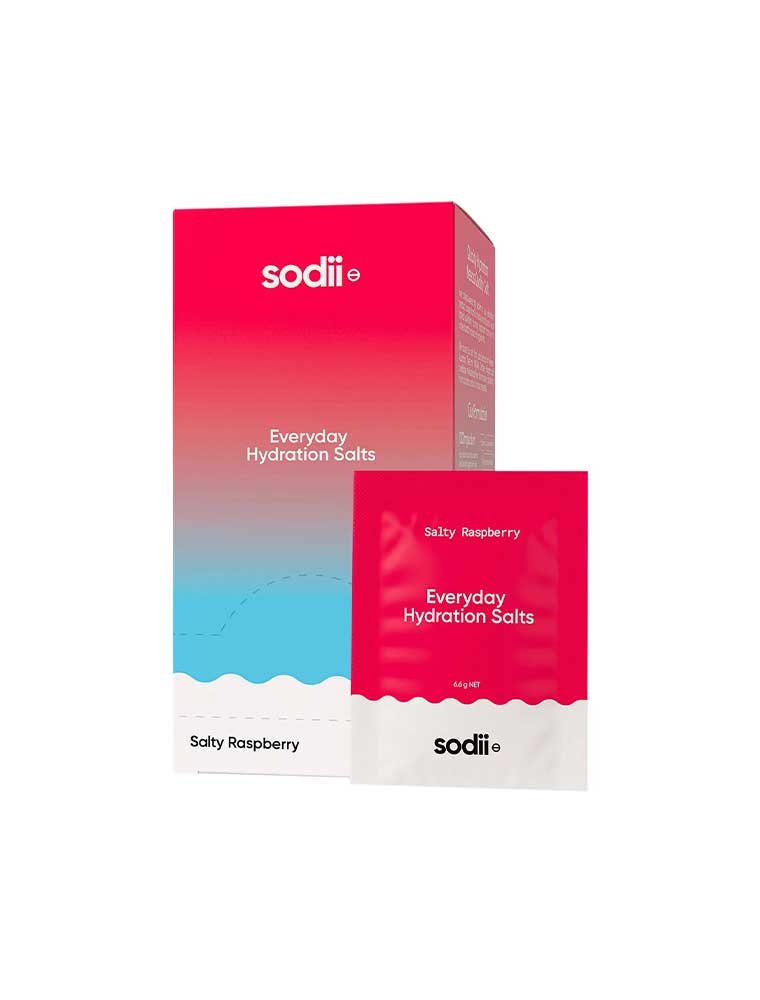 The Sodii Everyday Hydration Salts Salty Raspberry Sachets provide science-backed hydration on the go with this pack of 30 individual sachets. Each sachet delivers a deliciously sweet, salty raspberry flavour alongside an optimal electrolyte balance of 1000mg sodium, 210mg potassium, and 70mg magnesium to support your performance, fluid balance, and overall health. Sourced from Lake Deborah in Western Australia, the unique 5-million-year-old ancient lake salt is naturally formed, free from pollutants, and rich in essential trace minerals. Simply mix one sachet with water to create a perfectly balanced hydration drink with a delightfully fruity taste, encouraging you to drink more water throughout the day. Made in Australia.