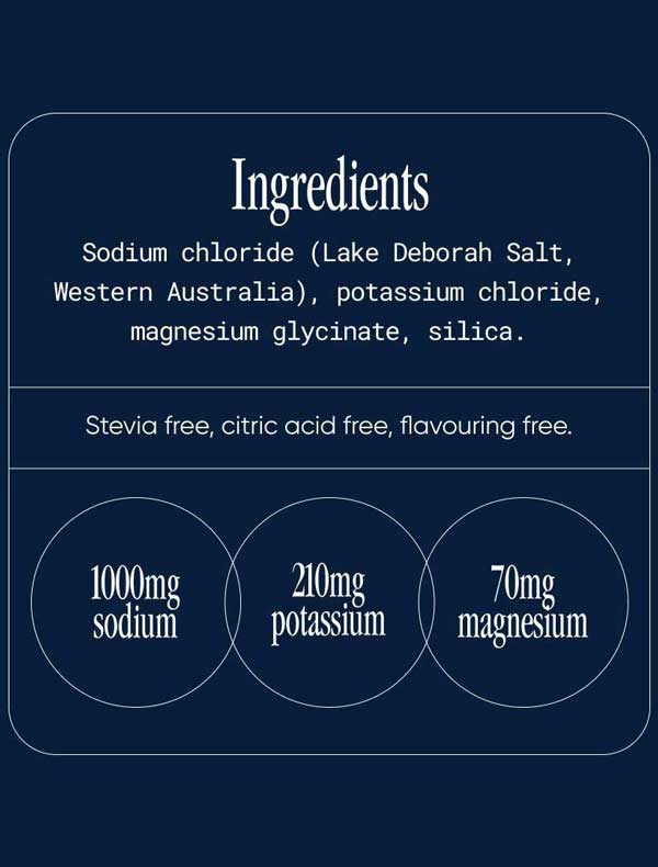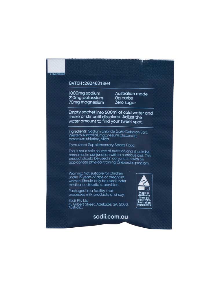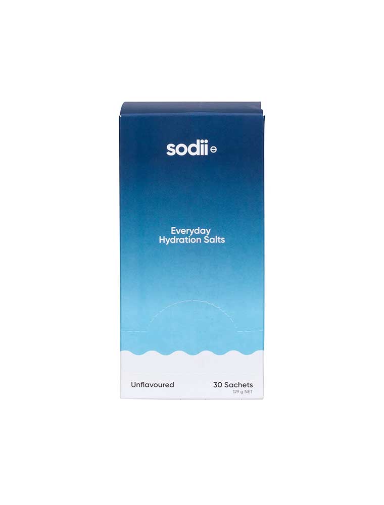 The Sodii Everyday Hydration Salts Unflavoured Sachets provide science-backed hydration on the go with this pack of 30 individual sachets. Each sachet provides an optimal electrolyte balance of 1000mg sodium, 210mg potassium, and 70mg magnesium to support your performance, fluid balance, and overall health. Sourced from Lake Deborah in Western Australia, the unique 5-million-year-old ancient lake salt is naturally formed, free from pollutants, and rich in essential trace minerals. Simply mix one sachet with water to create a perfectly balanced hydration drink that encourages you to drink more water throughout the day. Made in Australia.