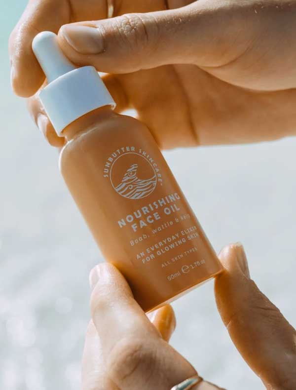 The SunButter Skincare Nourishing Face Oil combines Camellia and Jojoba with Australian Wattleseed and Mountain Pepper Leaf for daily nourishment. This fast-absorbing face oil also features Baobab, Rosehip and Kelp oils enhanced with Vitamin E for lasting hydration. The lightweight blend delivers antioxidant-rich moisture without greasiness for soft, plump skin. Made in Australia and vegan.