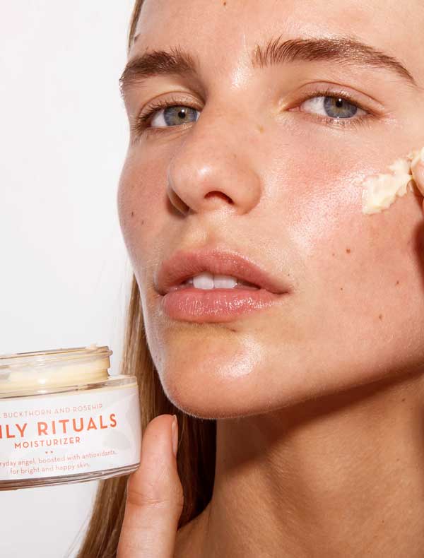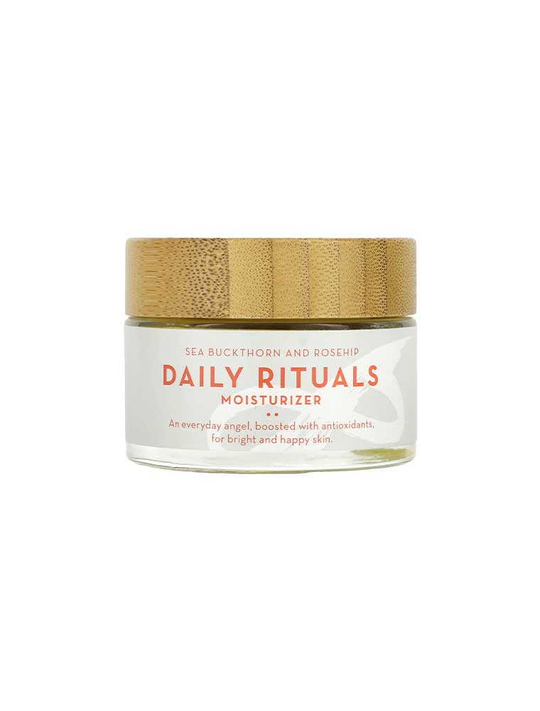 The Organic Skin Co Daily Rituals Moisturiser combines Sea Buckthorn and CO2-extracted botanicals for everyday skin nourishment. This balancing formula features vitamin-rich Sea Buckthorn alongside CO2-extracted Honeysuckle and Rosemary to restore and rejuvenate all skin types. Perfect for daily use, this lightweight moisturiser carries sweet citrus notes while helping to maintain healthy, balanced skin throughout the day. Made in New Zealand, certified organic, vegan and packaged in glass.