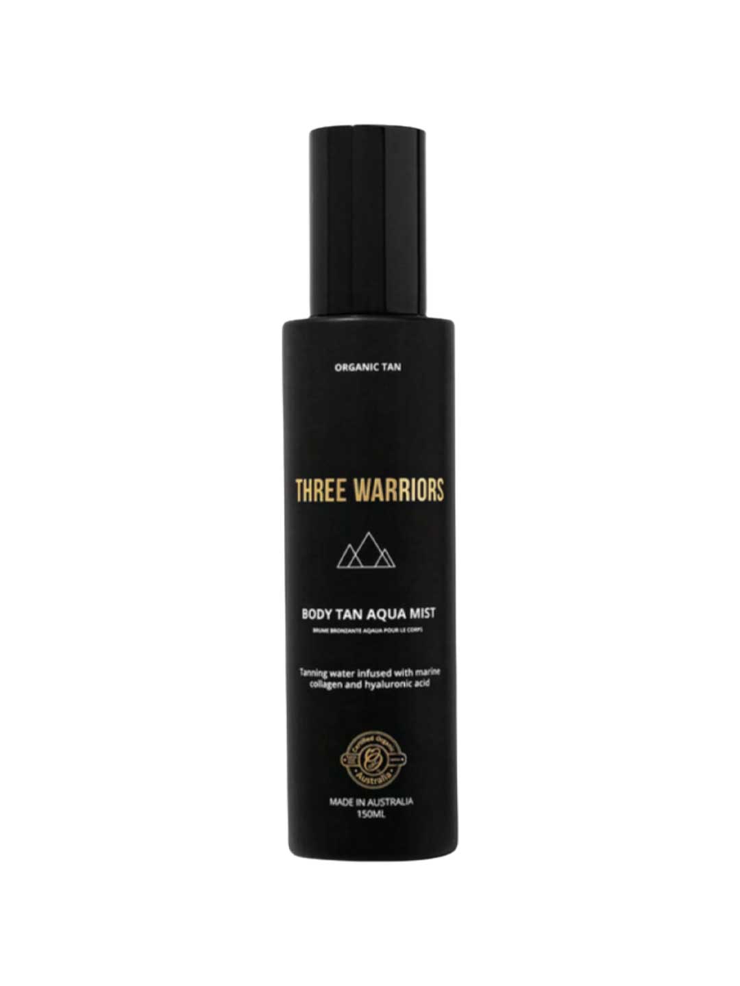 The Three Warriors Body Tan Water is a certified organic tanning solution formulated with Tasmanian Spring Water, Hyaluronic Acid, and Marine Collagen. This transparent body mist provides the body with a dewy, streak-free golden tan with no orange tones and added skincare benefits. It features Rose Oil for its antioxidant properties, Tasmanian Marine Collagen to promote firm skin and Hyaluronic Acid to help retain moisture. For best results, apply with an Eco-Friendly Tanning Mitt or make-up brush. Made in Australia, certified organic and vegan.