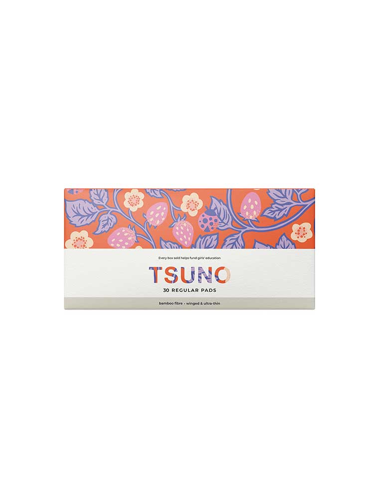 Tsuno Regular Pads 15 pack offers thoughtfully designed daytime protection made with sustainability and comfort in mind. These 240mm ultra-thin pads feature a natural bamboo fibre top sheet that's soft, breathable and antibacterial with a super absorbent inner layer for reliable protection. Each purchase supports meaningful change, with 50% of profits donated to charities focused on empowering women through education and menstrual support, including One Girl which provides scholarships and sanitary products to girls in Sierra Leone. The beautifully designed packaging showcases artwork from emerging and established artists. Made from sustainable bamboo, Chlorine and dioxin bleach free, Biodegradable films and wrappers, Social Traders Certified social enterprise.
