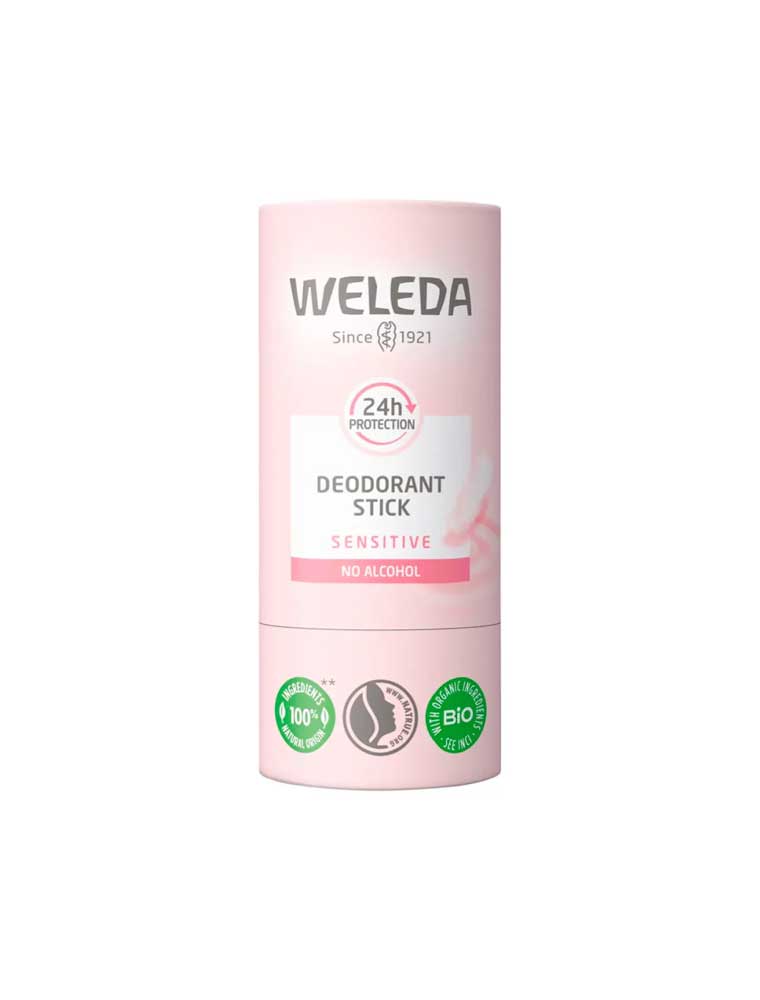 The Weleda Deodorant Stick Sensitive is a solid deodorant especially formulated for sensitive skin that offers 24-hour protection from body odours while maintaining the natural functions of the skin. Its gentle formula with nourishing sunflower seed wax and luxurious shea butter helps protect against unpleasant body odours whilst pampering the skin. Suitable for use after shaving or waxing underarms, the delicate comforting fragrance is a mix of essential oils featuring soothing mimosa, relaxing orange blossom and the soft scent of amyris. This alcohol-free formula, free from aluminium salts, is dermatologically tested. In clinical studies, 79% of users agreed it protects reliably against body odour, 88% agreed it leaves no stains, and 86% agreed it absorbs quickly. Its solid, plastic-free cardboard packaging makes it an ideal, eco-friendly travel companion. Made in Germany, certified natural and vegan.
