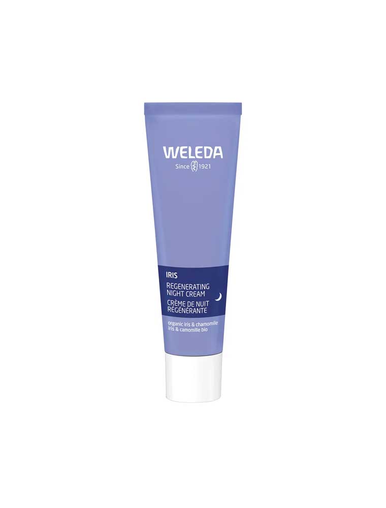 The Weleda Iris Regenerating Night Cream is a rich night cream for dry, dehydrated skin for those in their 20s. This nourishing and dermatologically tested formula features organically-grown ingredients selected to help support dry skin's natural overnight regeneration, Iris root for deep-down moisture balance, Chamomile and Calendula to soothe, and essential oils for a restful fragrance. This cream nourishes while supporting regeneration and the natural skin lipids. In clinical studies, 91% reported soothed skin in self-assessment after 28 days, and 64% reported skin looks revived in self-assessment after 28 days. Made in Germany and certified natural.
